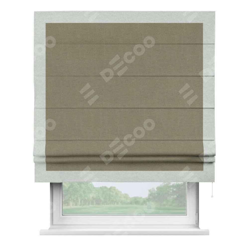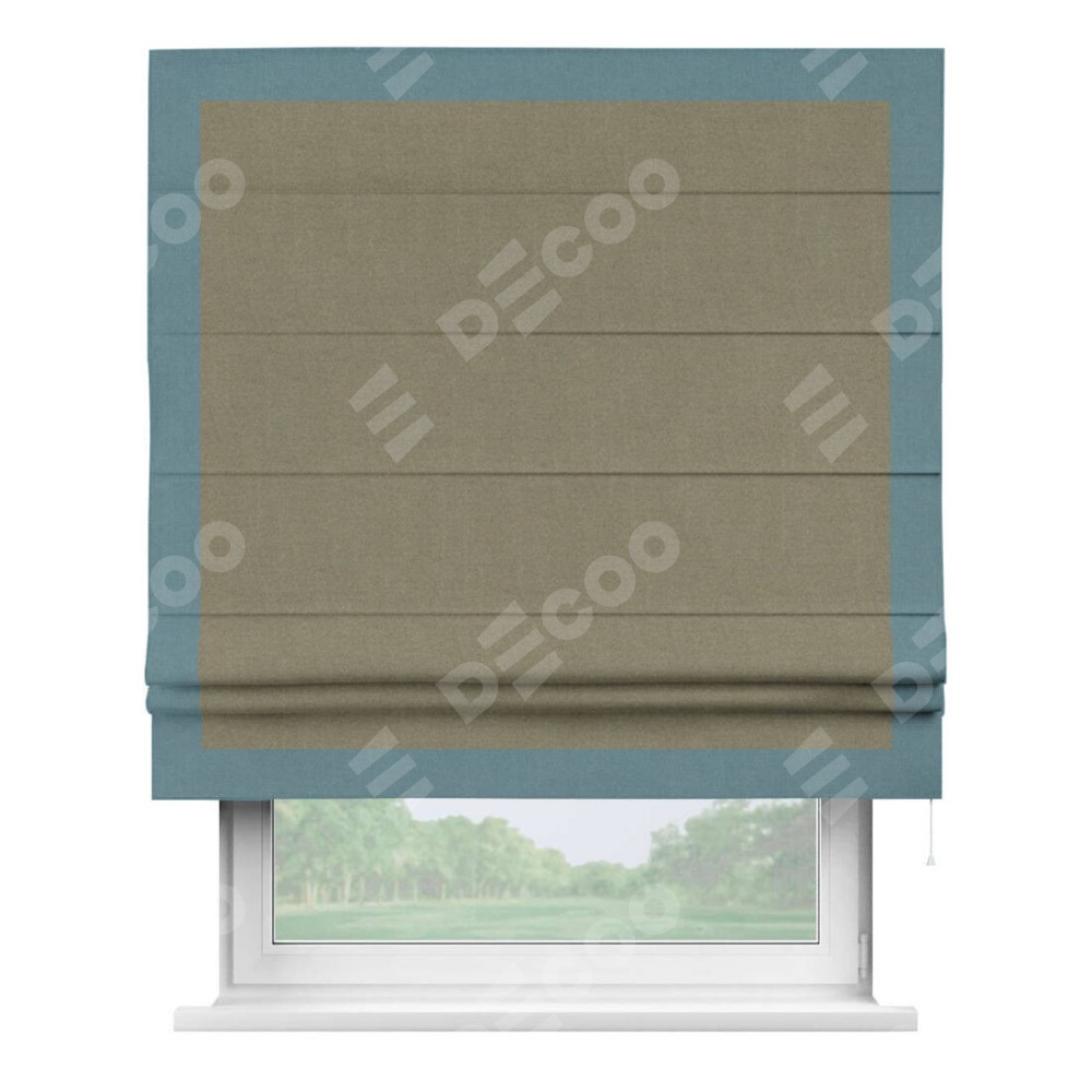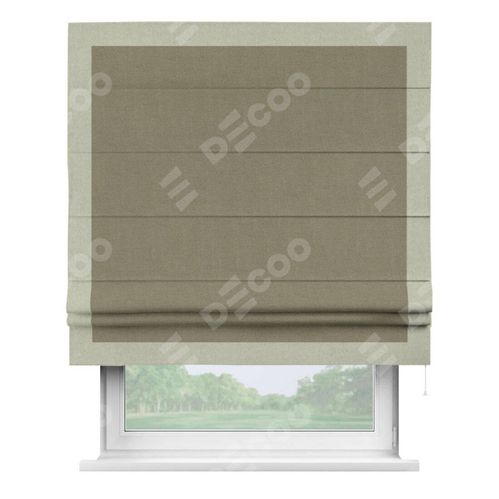 Римская штора производителя «Cortin», используется для проёма, пошита из ткани лён блэкаут бежевый, артикул 69435. Отделка шторы кантом «Чесс», ткань для канта используется из льна разной расцветки на выбор. Имеет универсальный механизм и подходит для монтажа: на потолок, на стену и в нишу.