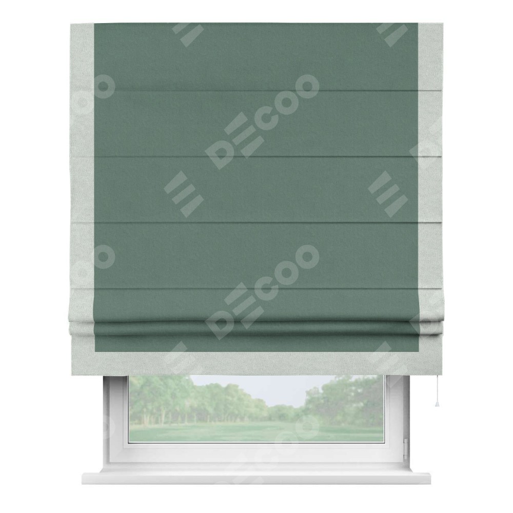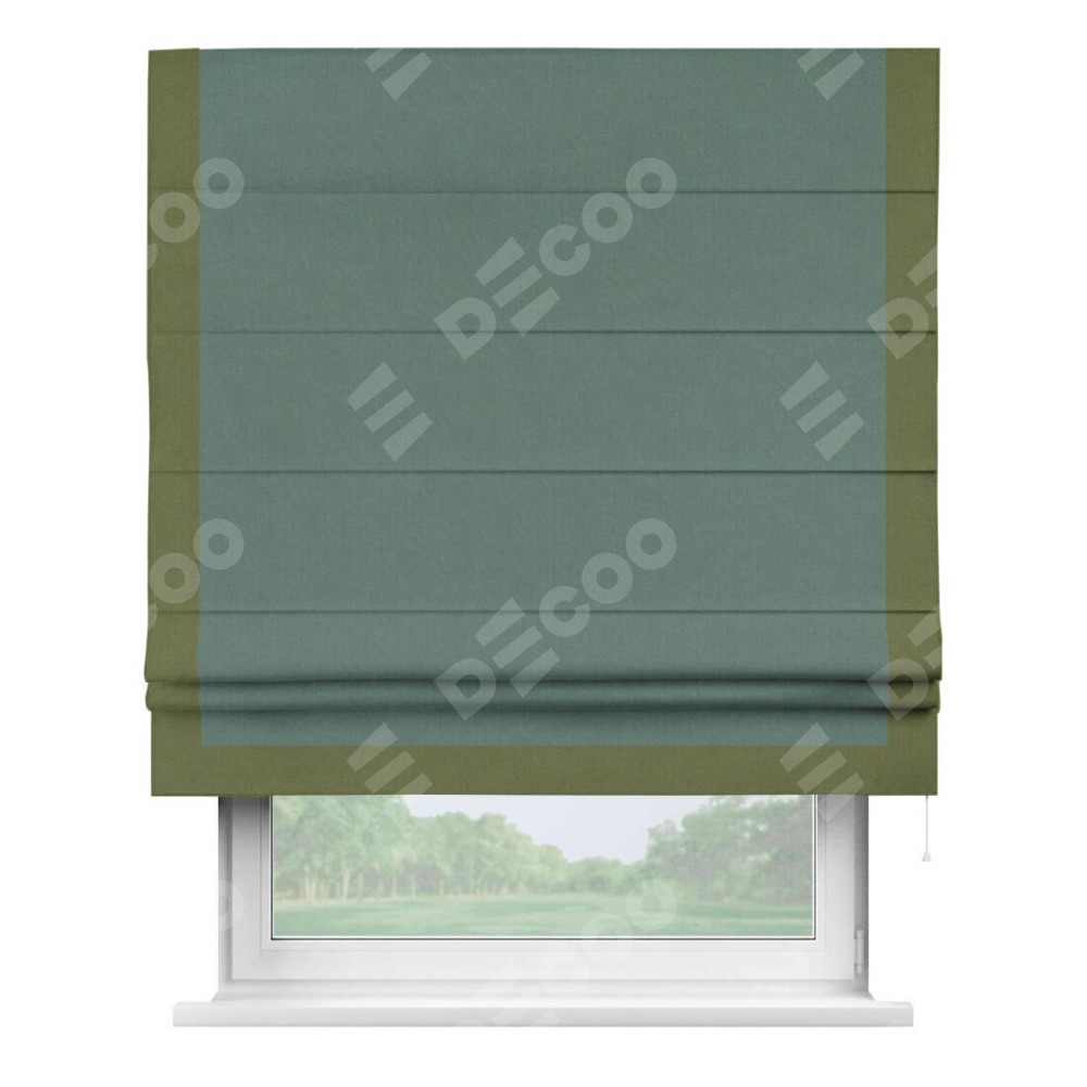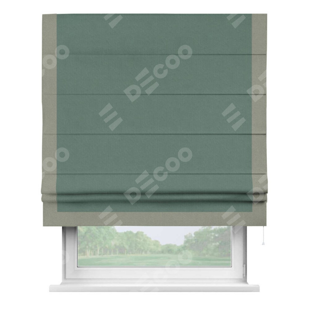 Римская штора «Кортин» с кантом Виктория, для проема, лён блэкаут бирюзовый