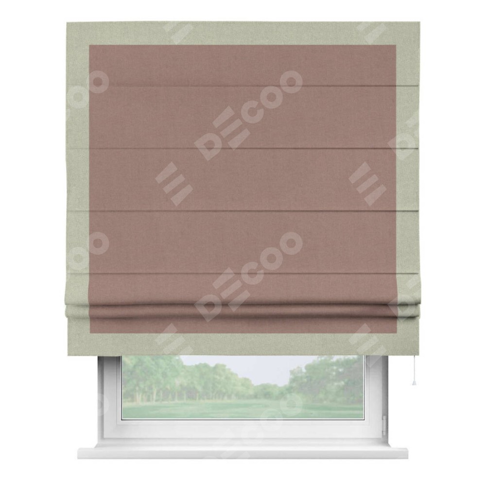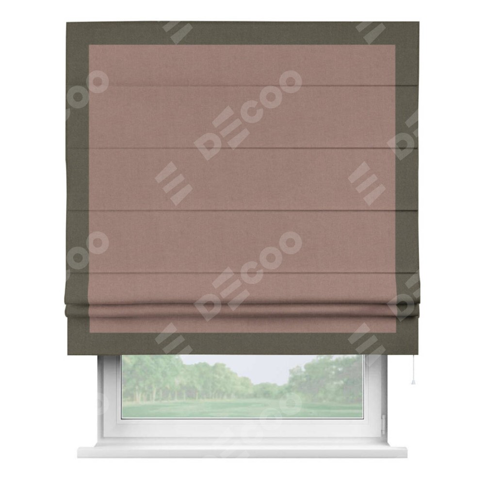 Римская штора «Кортин» с кантом Чесс, для проема, лён блэкаут розовый