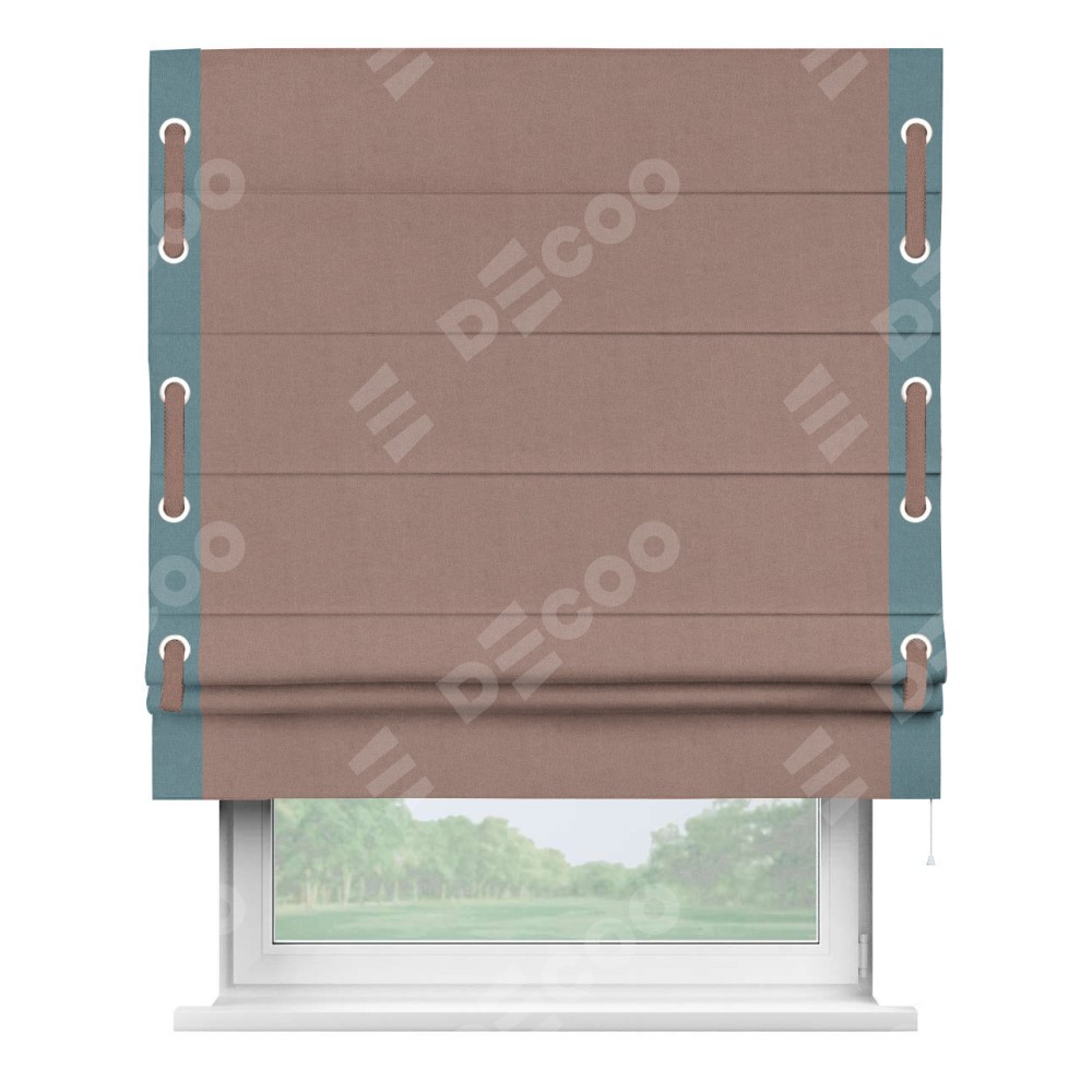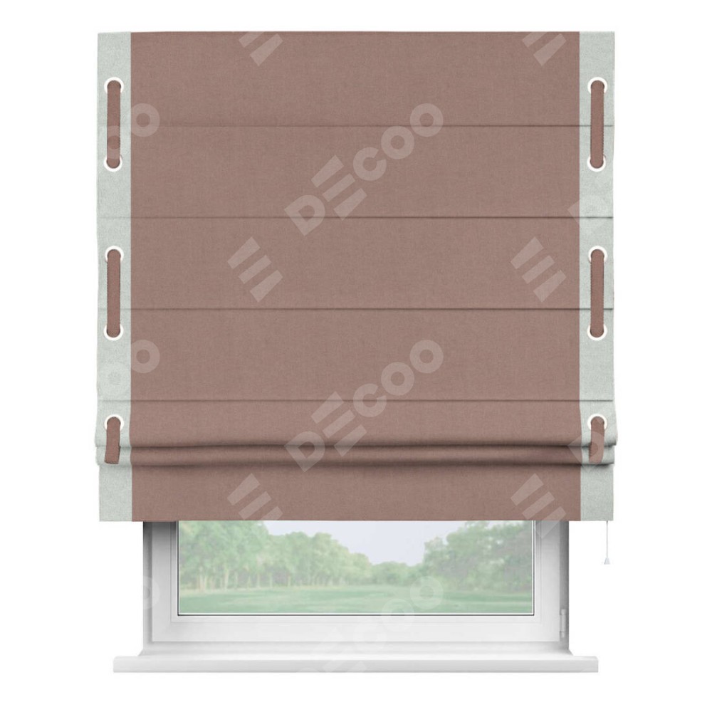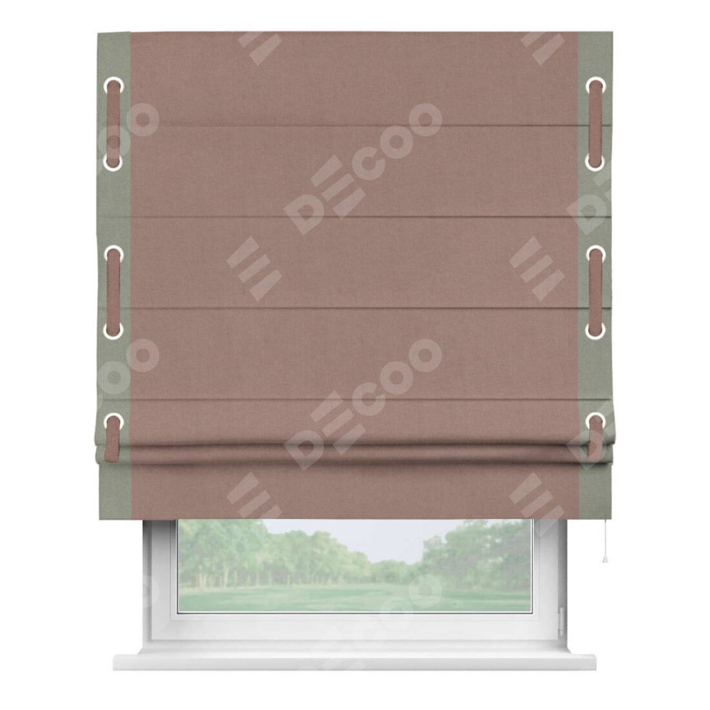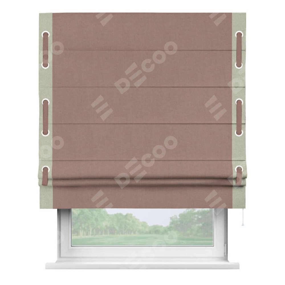 Римская штора «Кортин» с кантом Стрим Дуо (люверсы с пояском), для проема, лён блэкаут розовый