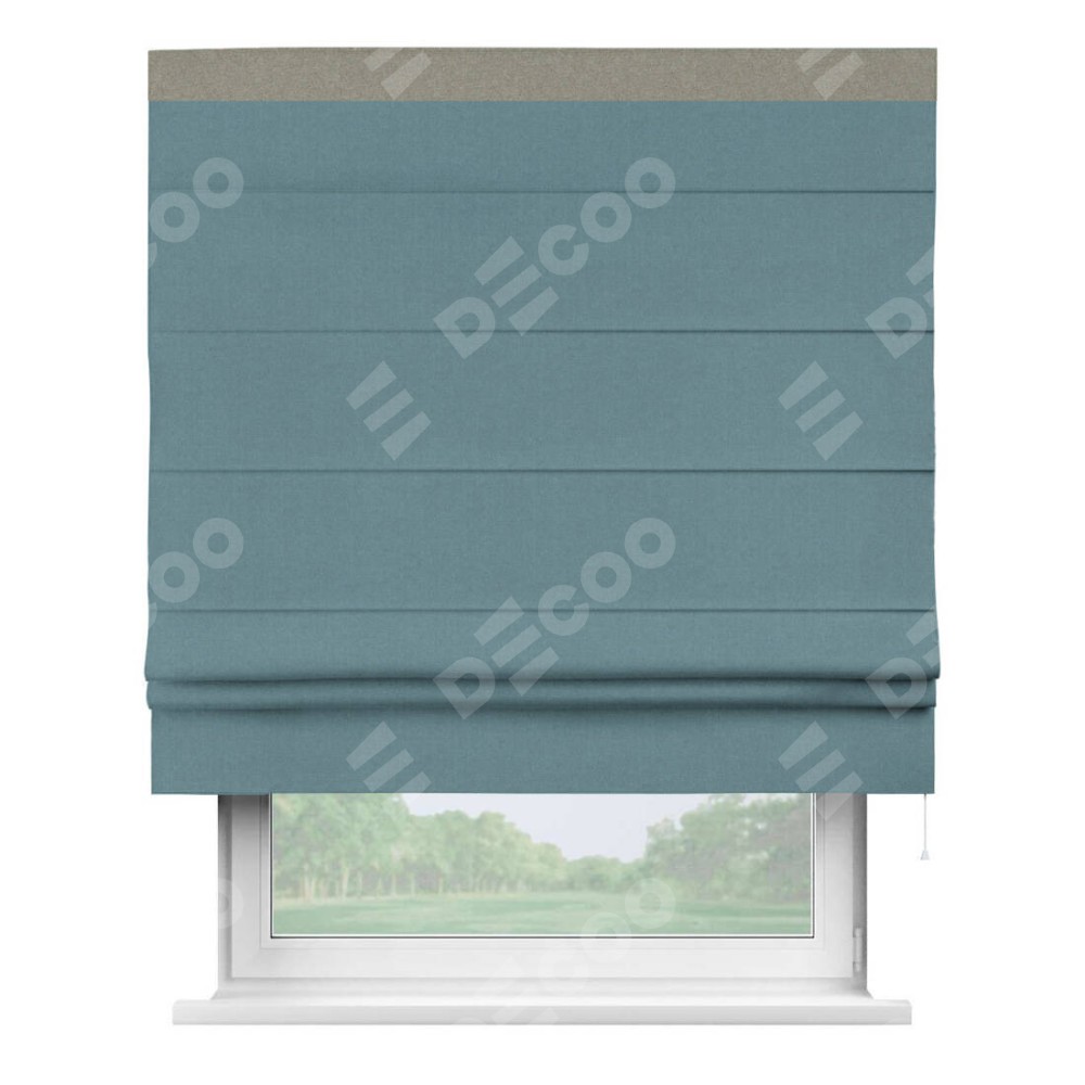 Римская штора «Кортин» с кантом Кинг, для проема, лён блэкаут синий