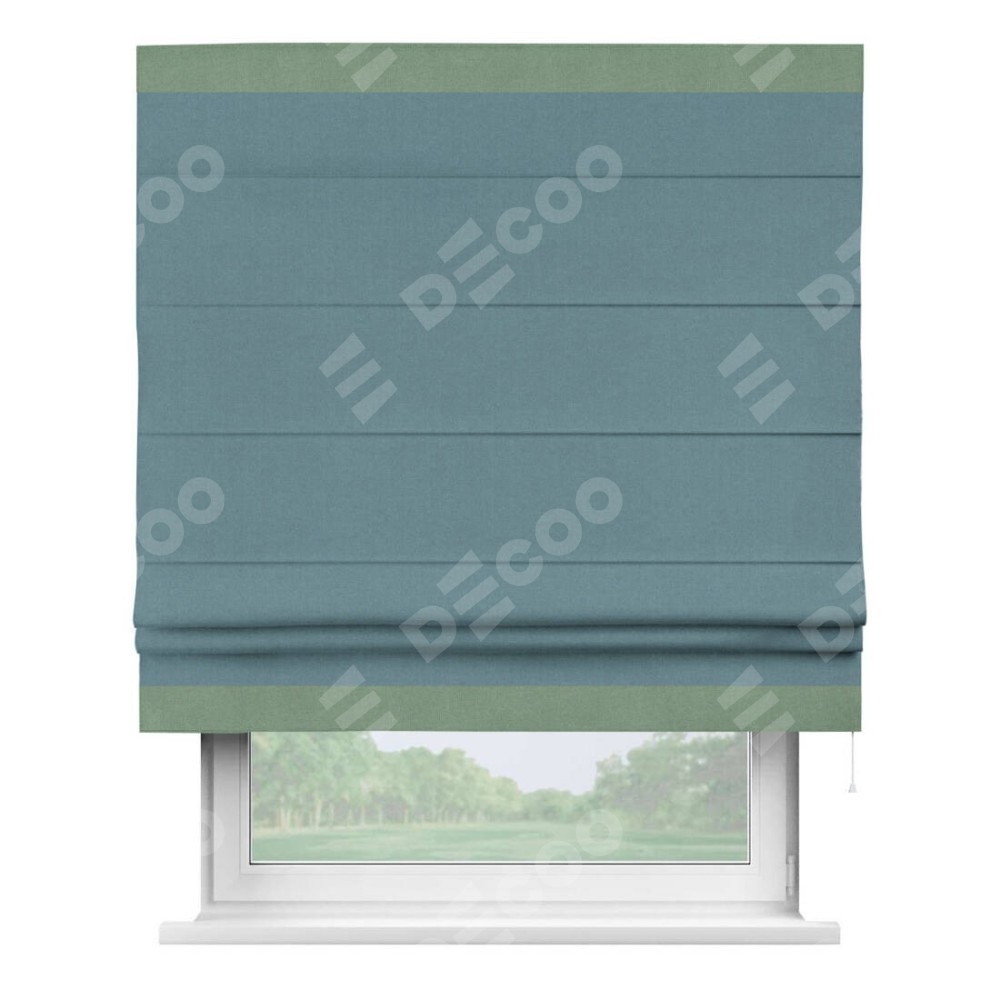 Римская штора производителя «Cortin», используется для проёма, пошита из ткани лён блэкаут синий, артикул 69528. Отделка шторы кантом «Горизонт», ткань для канта используется из льна разной расцветки на выбор. Имеет универсальный механизм и подходит для монтажа: на потолок, на стену и в нишу.