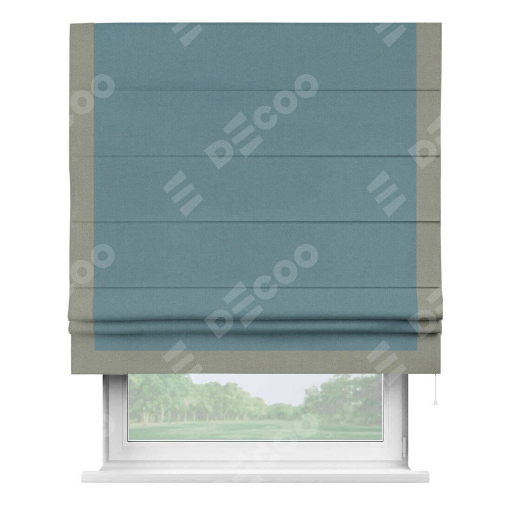 Римская штора «Кортин» с кантом Виктория, для проема, лён блэкаут синий