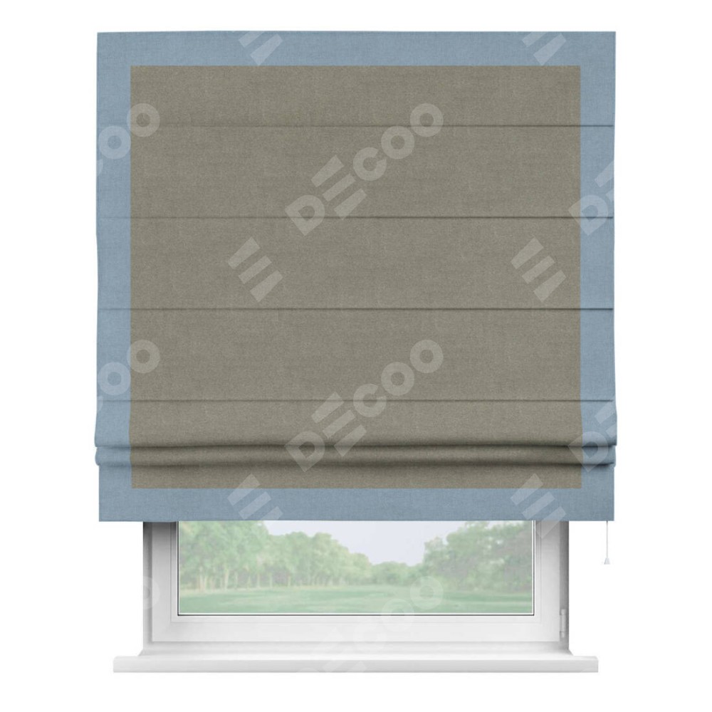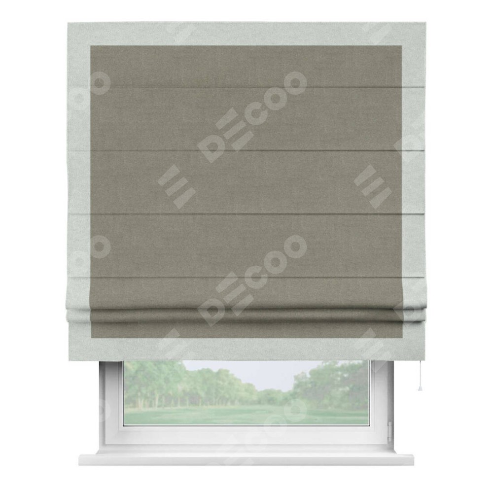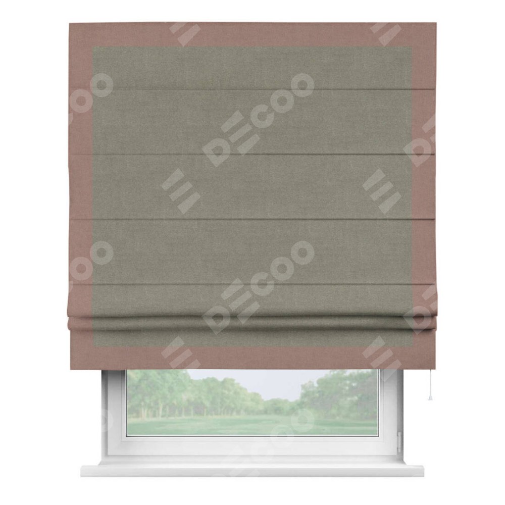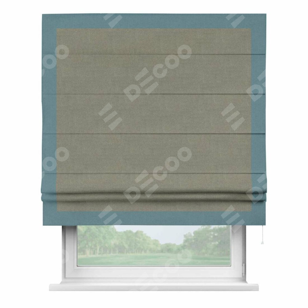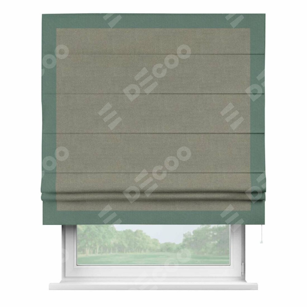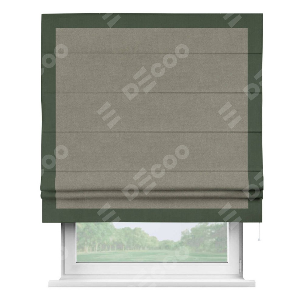 Римская штора «Кортин» с кантом Чесс, для проема, лён блэкаут шампань
