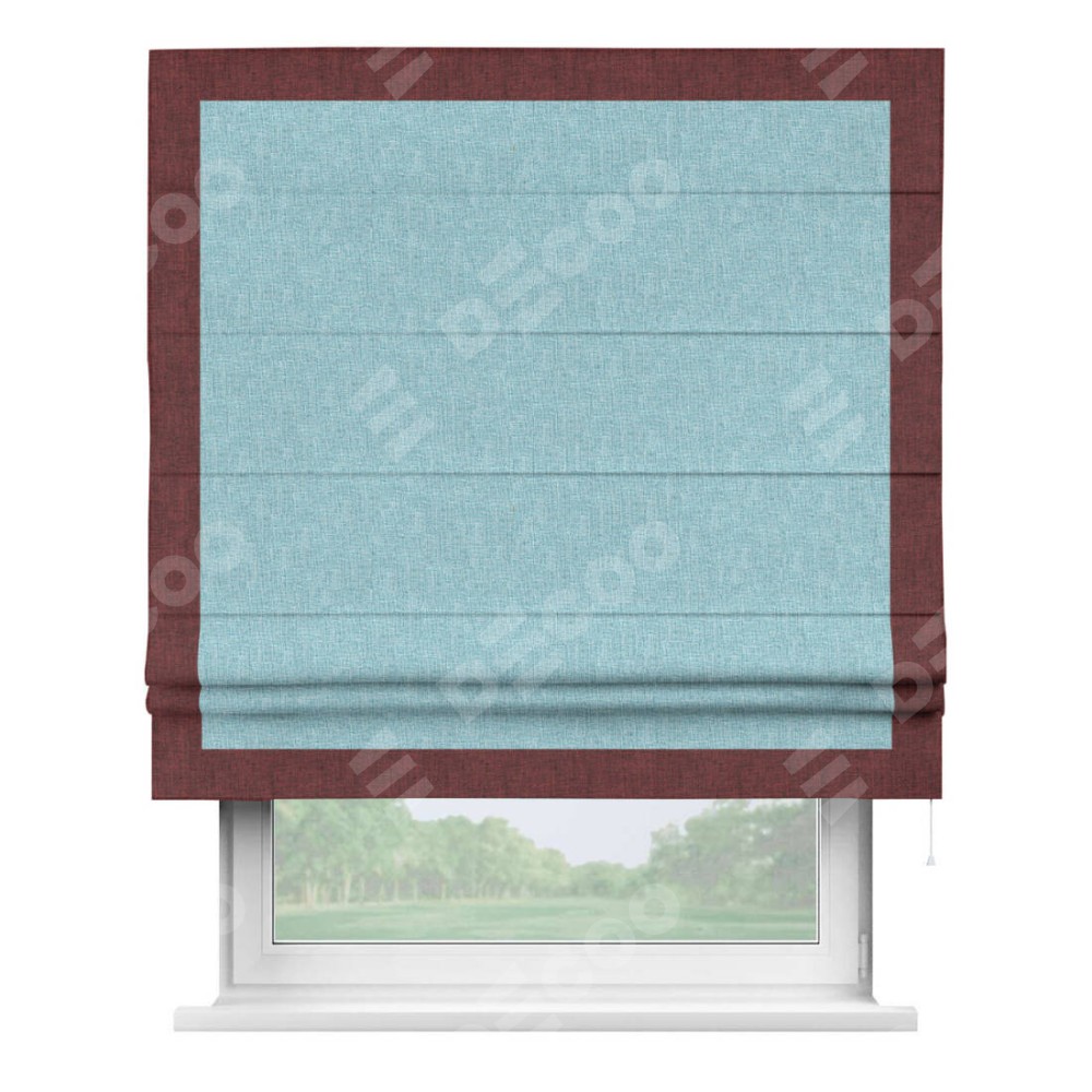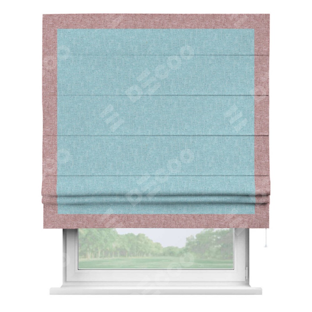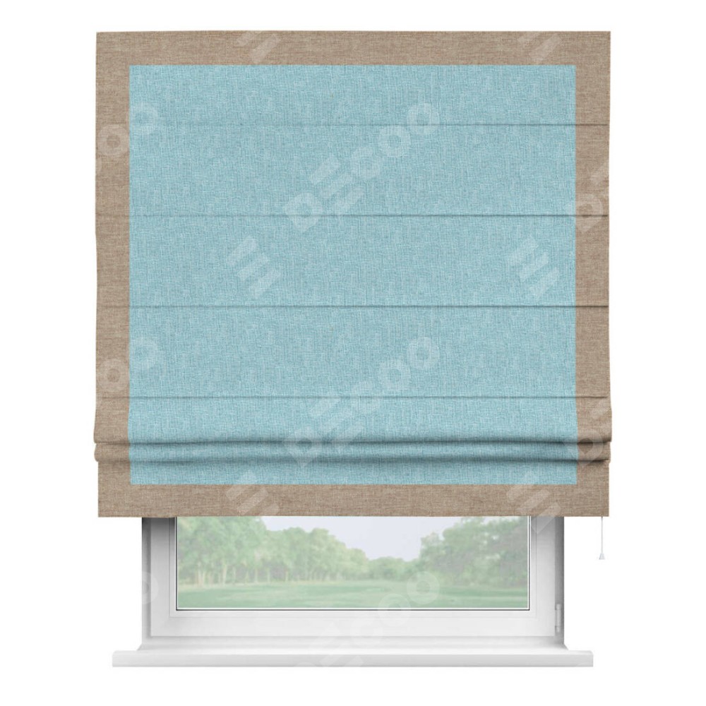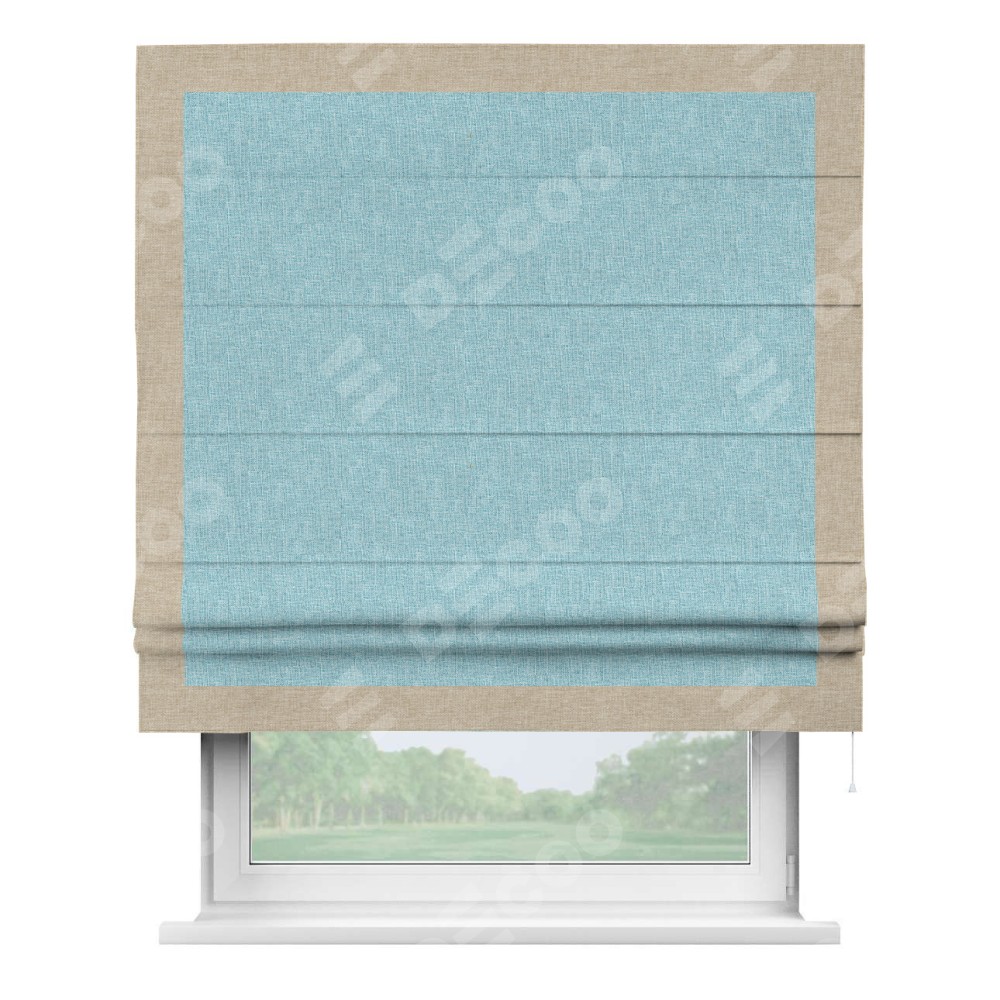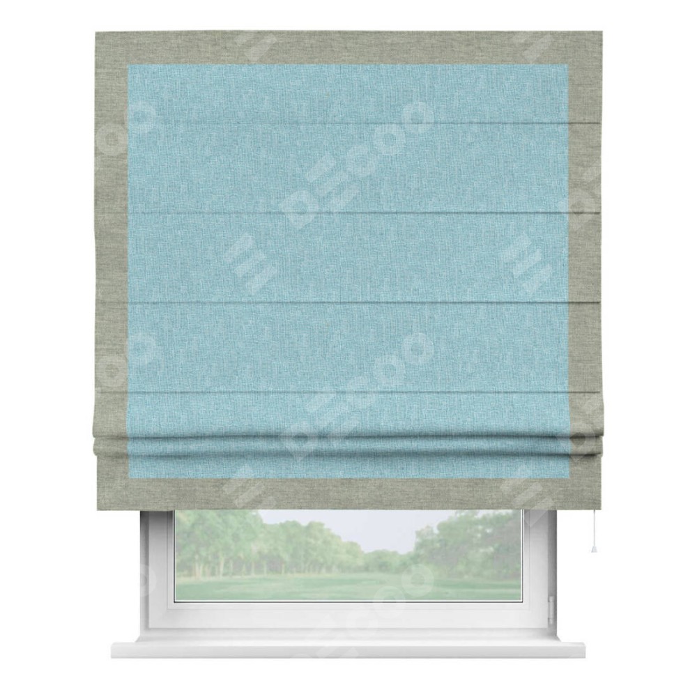 Римская штора «Кортин» с кантом Чесс, для проема, ткань лён кашемир голубой