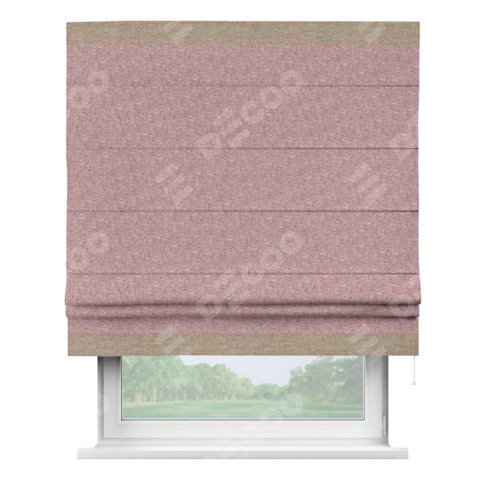 Римская штора «Кортин» с кантом Горизонт, для проема, ткань лён кашемир розовая пудра