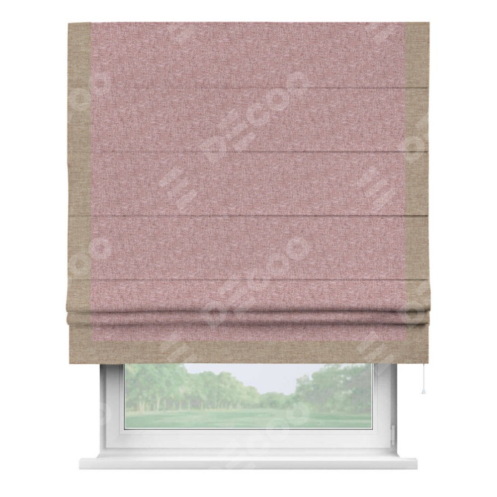Римская штора «Кортин» с кантом Виктория, для проема, ткань лён кашемир розовая пудра
