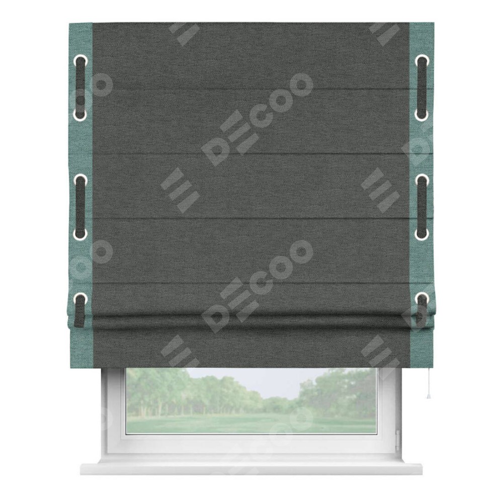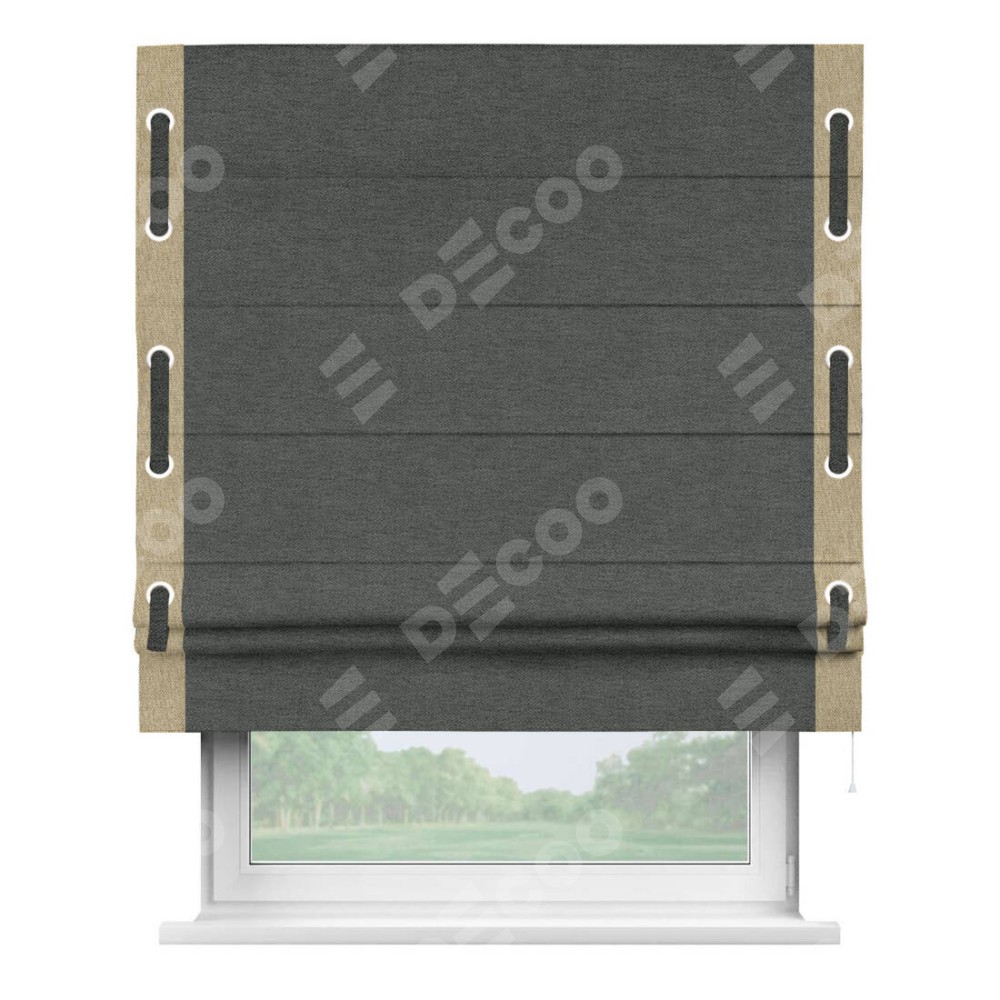 Римская штора «Кортин» с кантом Стрим Дуо (люверсы с пояском), для проема, ткань стиф димаут графит