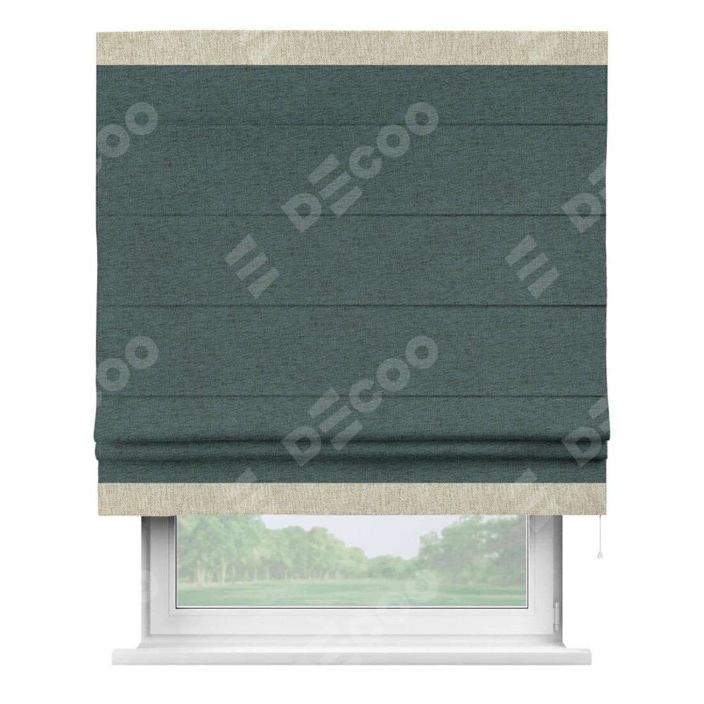 Римская штора «Кортин» с кантом Горизонт, для проема, ткань стиф димаут сине-зелёный