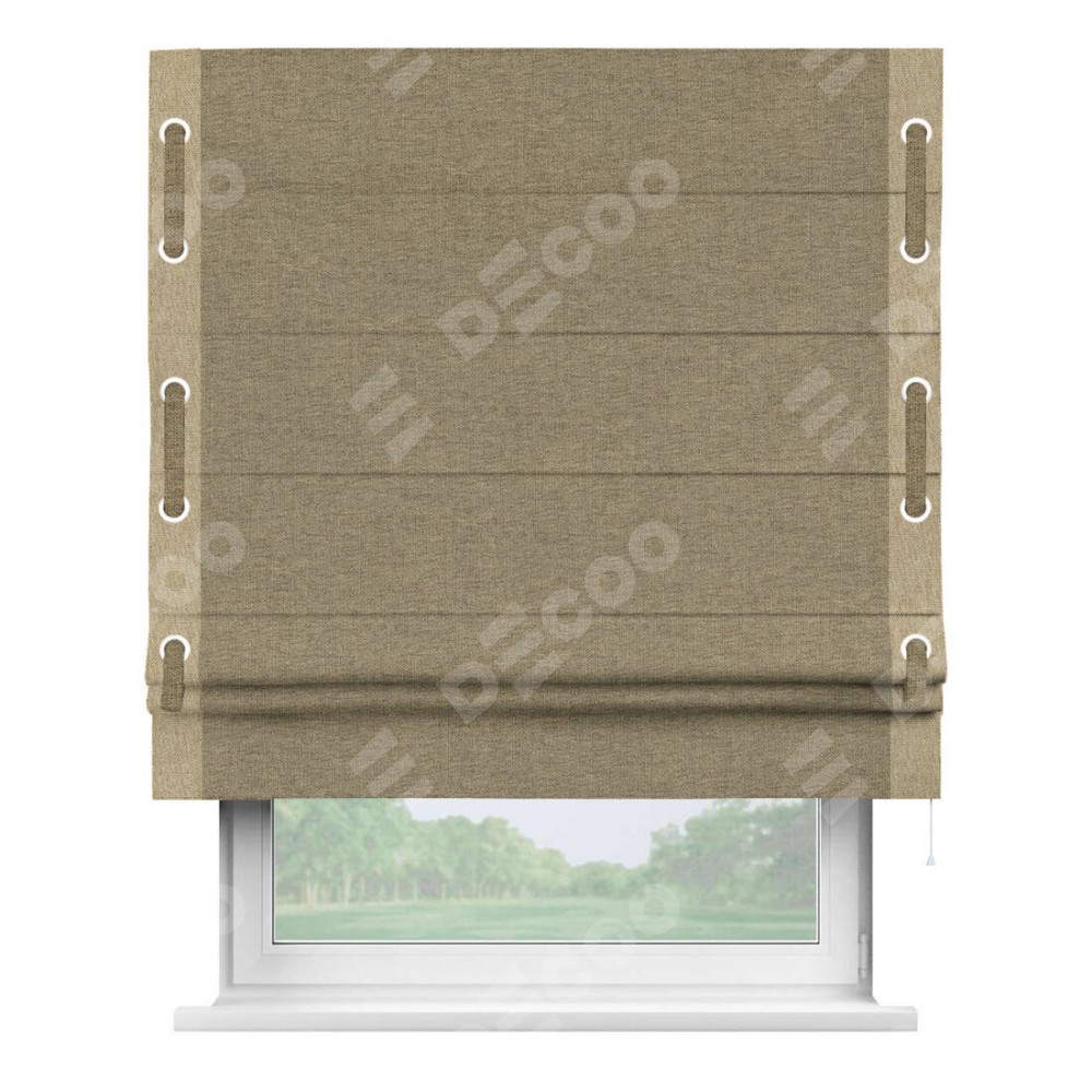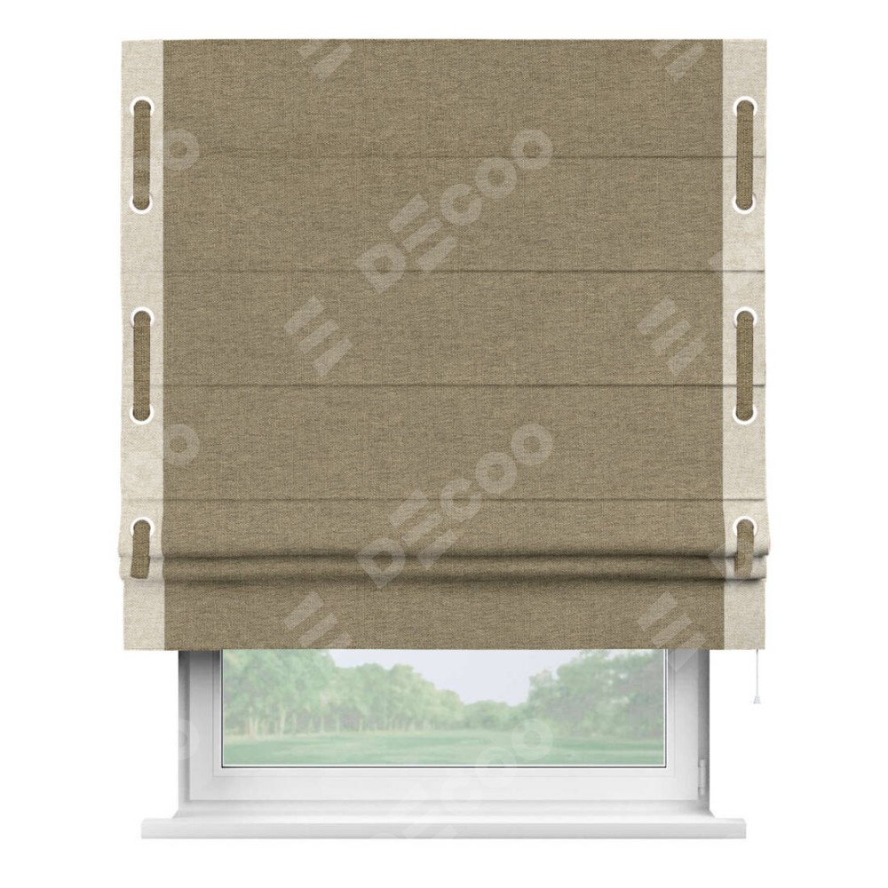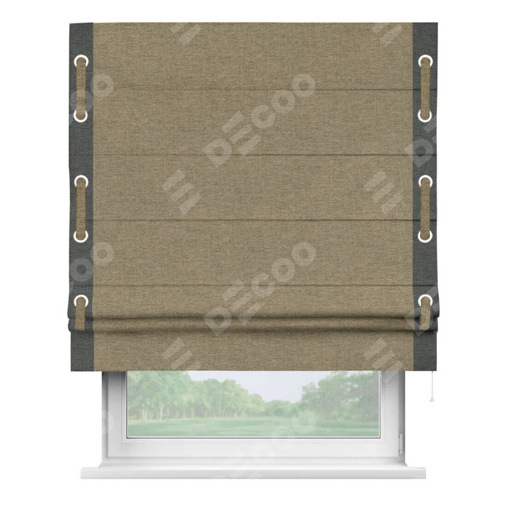 Римская штора «Кортин» с кантом Стрим Дуо (люверсы с пояском), для проема, ткань стиф димаут тёмно-бежевый