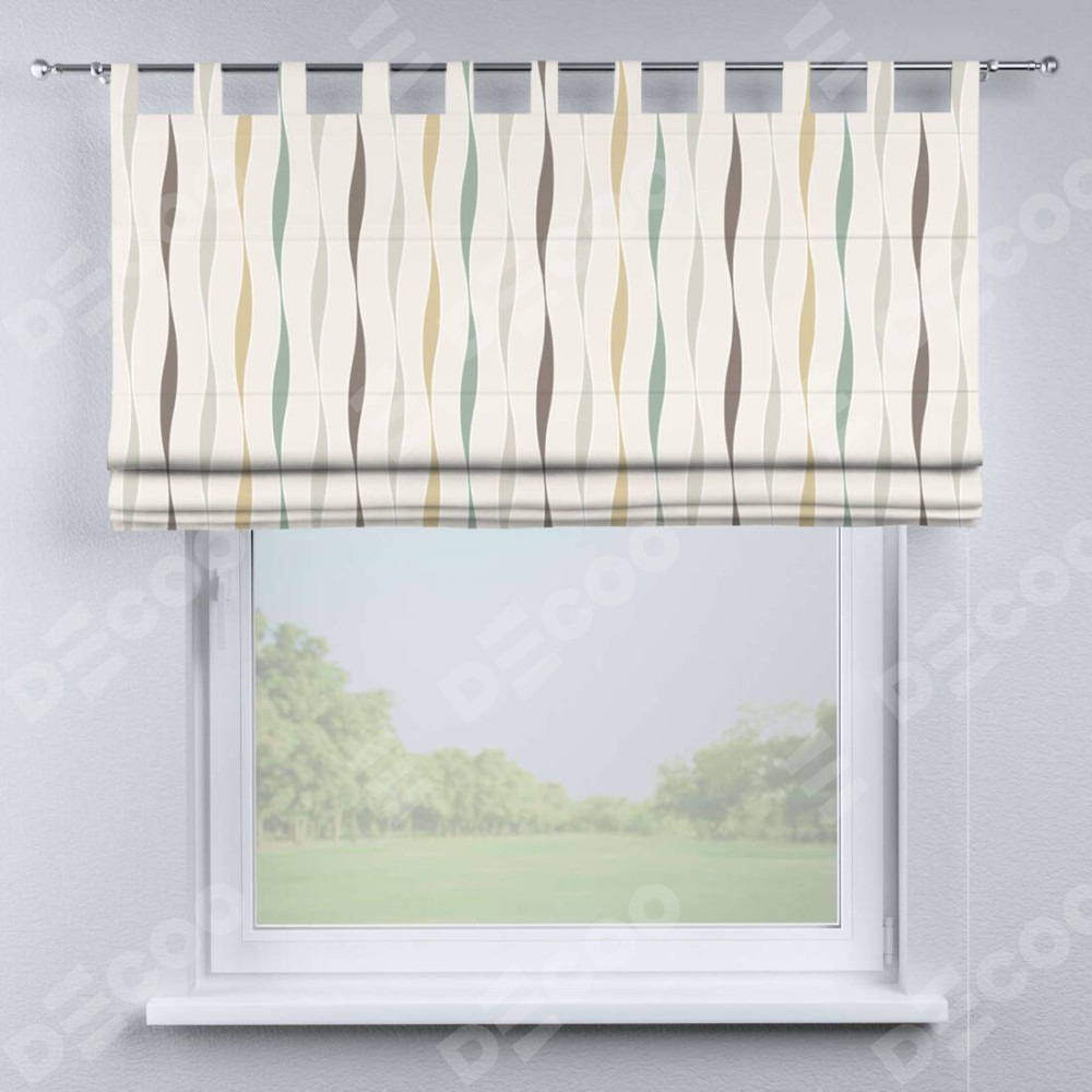 Римская штора производителя «Cortin», используется для проёма, пошита из ткани блэкаут с нанесением сублимационной печати «Дельта». Данная модель пошита на петлях, комплектуется на выбор круглым карнизом и подходит для монтажа на стену. Римская штора на петлях имеет простую систему регулировки высоты, отличительным преимуществом данной модели является простой способ монтажа. Достаточно повесить ее на трубу и штора готова!