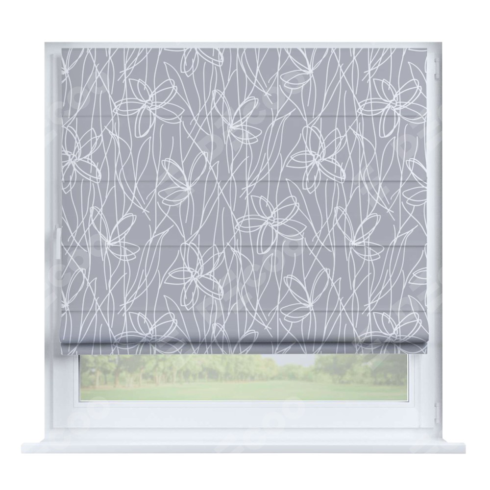 Римская штора производителя «Cortin», устанавливается на створку окна, пошита из ткани блэкаут с нанесением сублимационной печати «Нарисованные цветы». Штора шьётся по индивидуальным размерам, для данного типа римской шторы возможная ширина от 35 до 150 см., высота до 250 см.