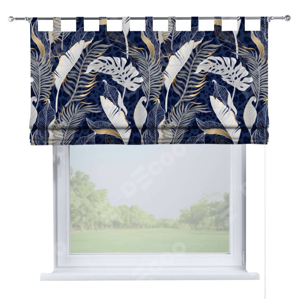 Римская штора производителя «Cortin», используется для проёма, пошита из ткани блэкаут с нанесением сублимационной печати «Сине-золотые джунгли». Данная модель пошита на петлях, комплектуется на выбор круглым карнизом и подходит для монтажа на стену. Римская штора на петлях имеет простую систему регулировки высоты, отличительным преимуществом данной модели является простой способ монтажа. Достаточно повесить ее на трубу и штора готова!