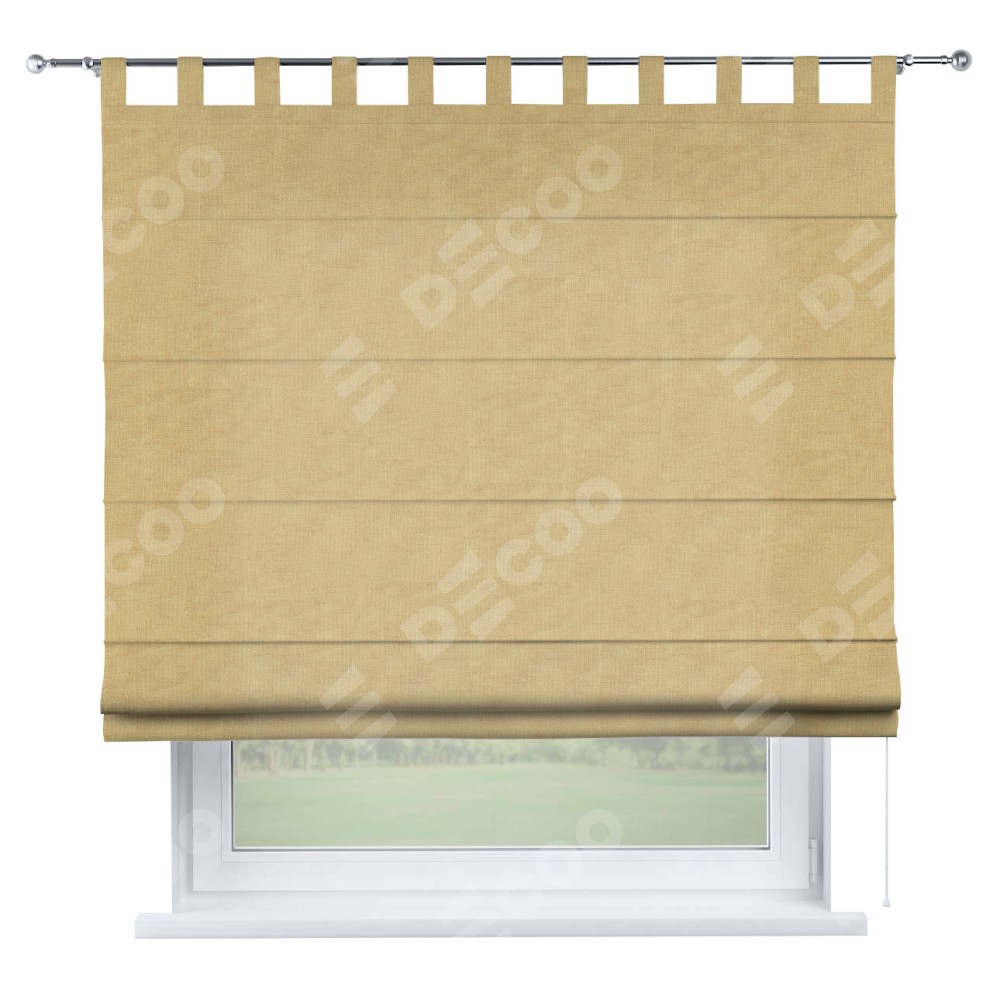 Римская штора производителя «Cortin», используется для проёма, пошита из ткани канвас абрикосовый, артикул ткани v-448. Данная модель пошита на петлях, комплектуется на выбор круглым карнизом и подходит для монтажа на стену. Римская штора на петлях имеет простую систему регулировки высоты, отличительным преимуществом данной модели является простой способ монтажа. Достаточно повесить ее на трубу и штора готова!