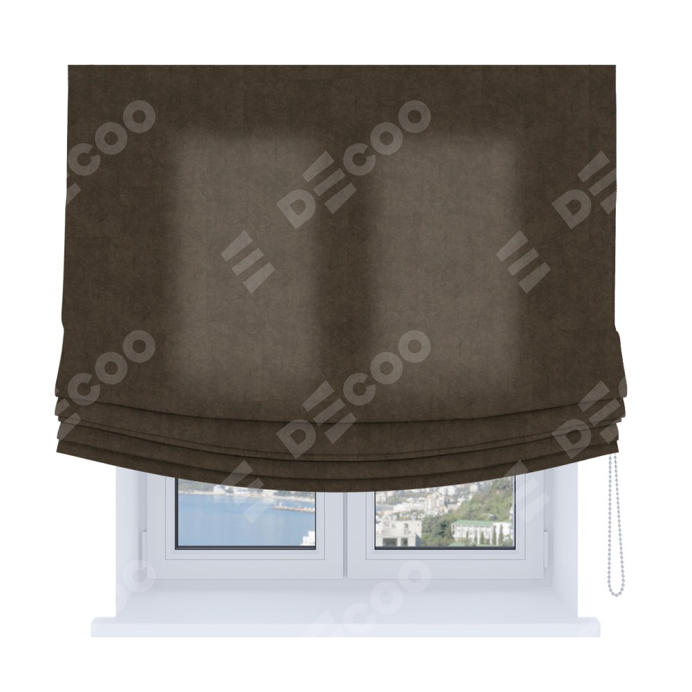 Римская штора «Кортин», канвас коричневый, Soft с мягкими складками