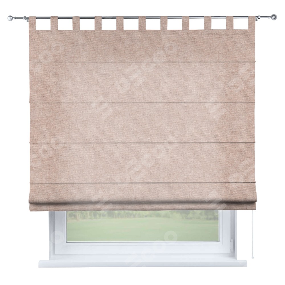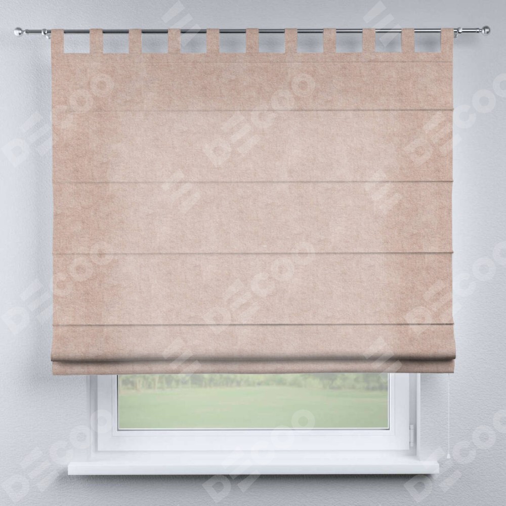 Римская штора производителя «Cortin», используется для проёма, пошита из ткани канвас пудровый, артикул ткани v-35. Данная модель пошита на петлях, комплектуется на выбор круглым карнизом и подходит для монтажа на стену. Римская штора на петлях имеет простую систему регулировки высоты, отличительным преимуществом данной модели является простой способ монтажа. Достаточно повесить ее на трубу и штора готова!