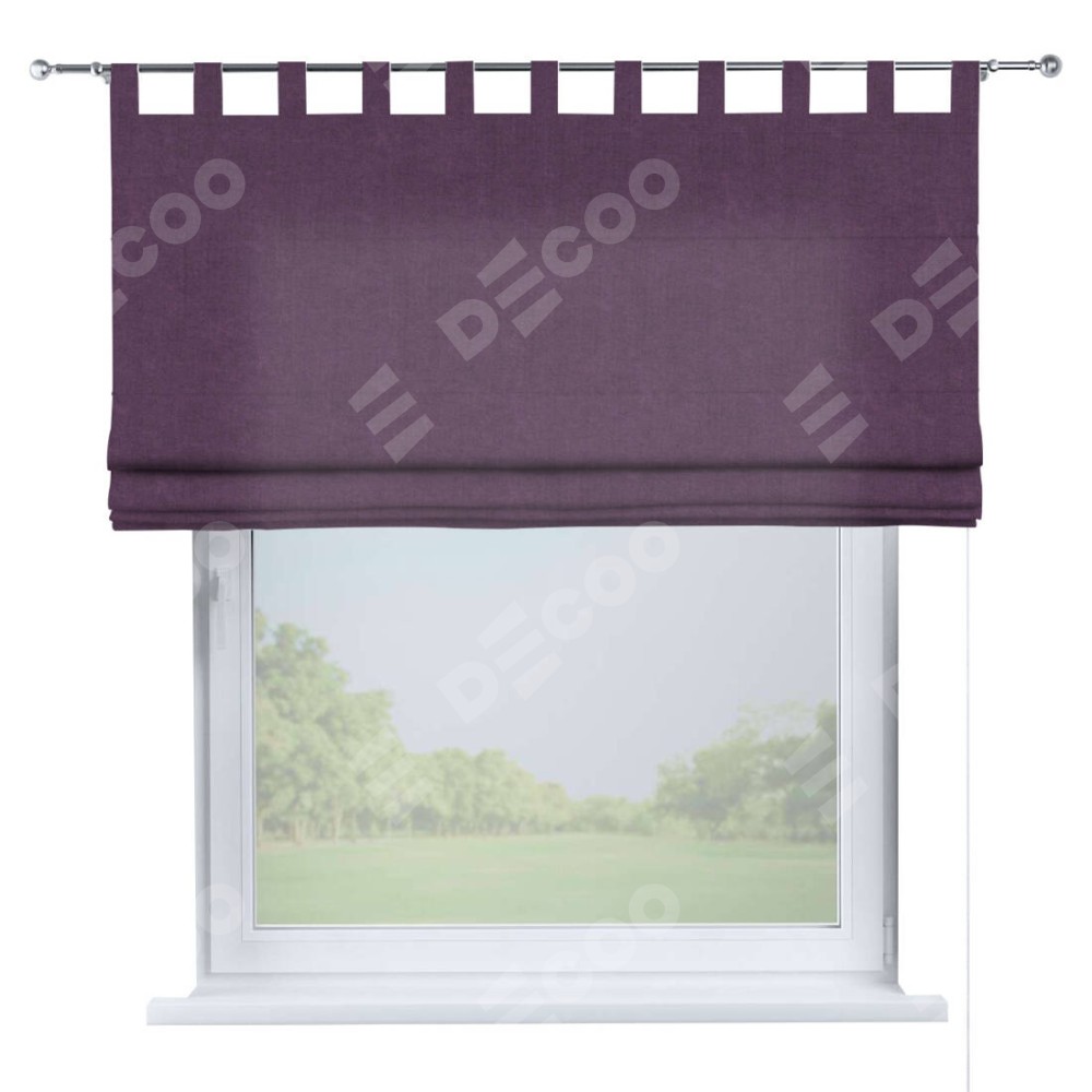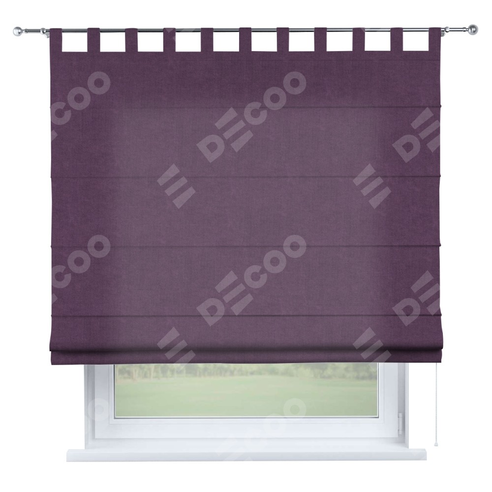 Римская штора производителя «Cortin», используется для проёма, пошита из ткани канвас сиреневый, артикул ткани v-98. Данная модель пошита на петлях, комплектуется на выбор круглым карнизом и подходит для монтажа на стену. Римская штора на петлях имеет простую систему регулировки высоты, отличительным преимуществом данной модели является простой способ монтажа. Достаточно повесить ее на трубу и штора готова!
