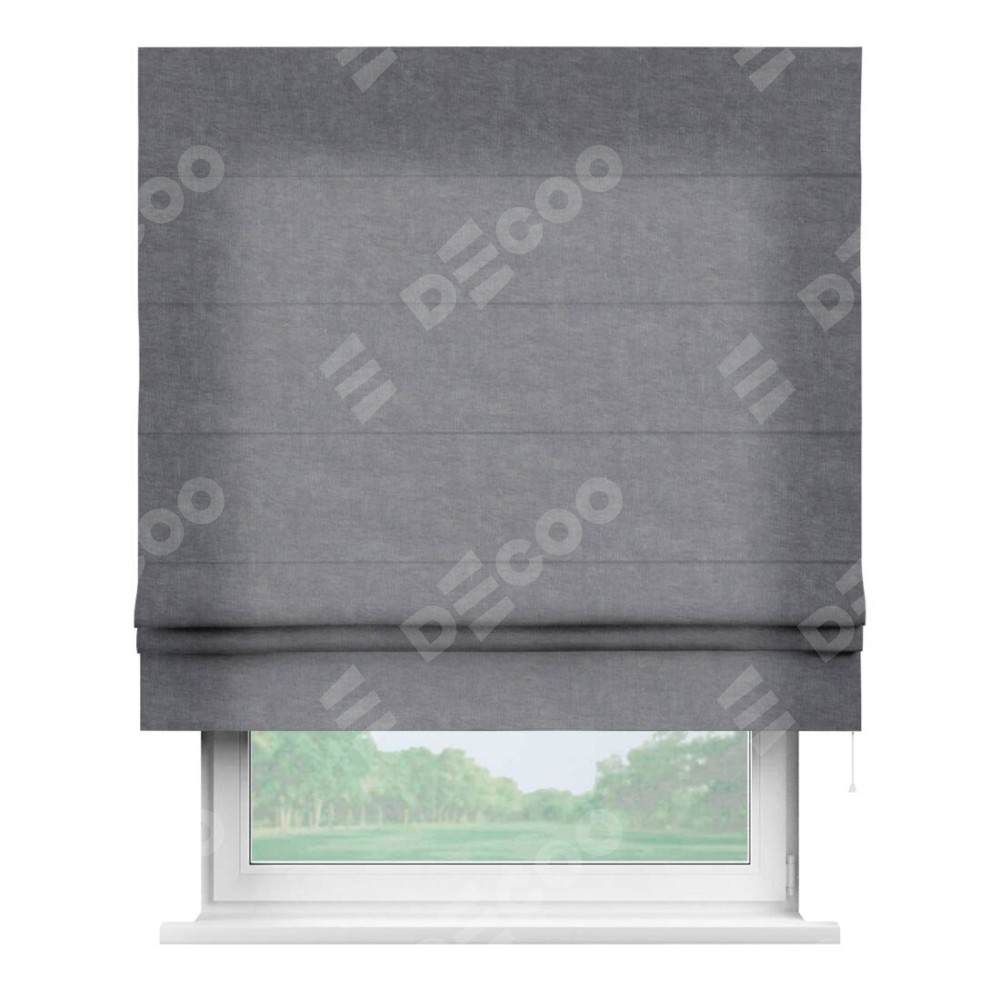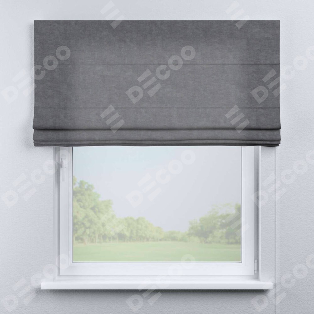 Римская штора производителя «Cortin», используется для проёма, пошита из ткани канвас стальной, артикул ткани v-1082. Имеет универсальный механизм и подходит для монтажа: на потолок, на стену и в нишу.