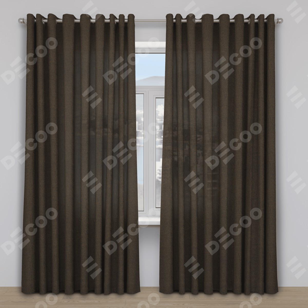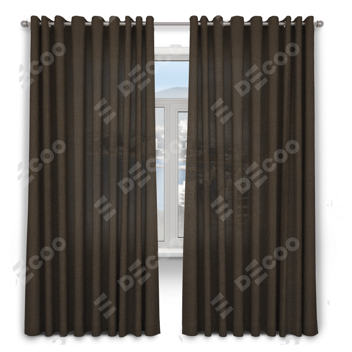Комплект прямых штор, от производителя «Cortin», пошиты из ткани лён тёмно-коричневый, артикул ткани 53444. Данная модель пошита на люверсах, комплектуется на выбор круглым карнизом и подходит для монтажа на стену. Прямые шторы на люверсах шьются по стандарту с коэффициентом 1/2 (на 100 см. ширины проёма 200 см. ширины ткани), отличительным преимуществом данной модели является простой способ монтажа. Достаточно повесить ее на трубу и штора готова!