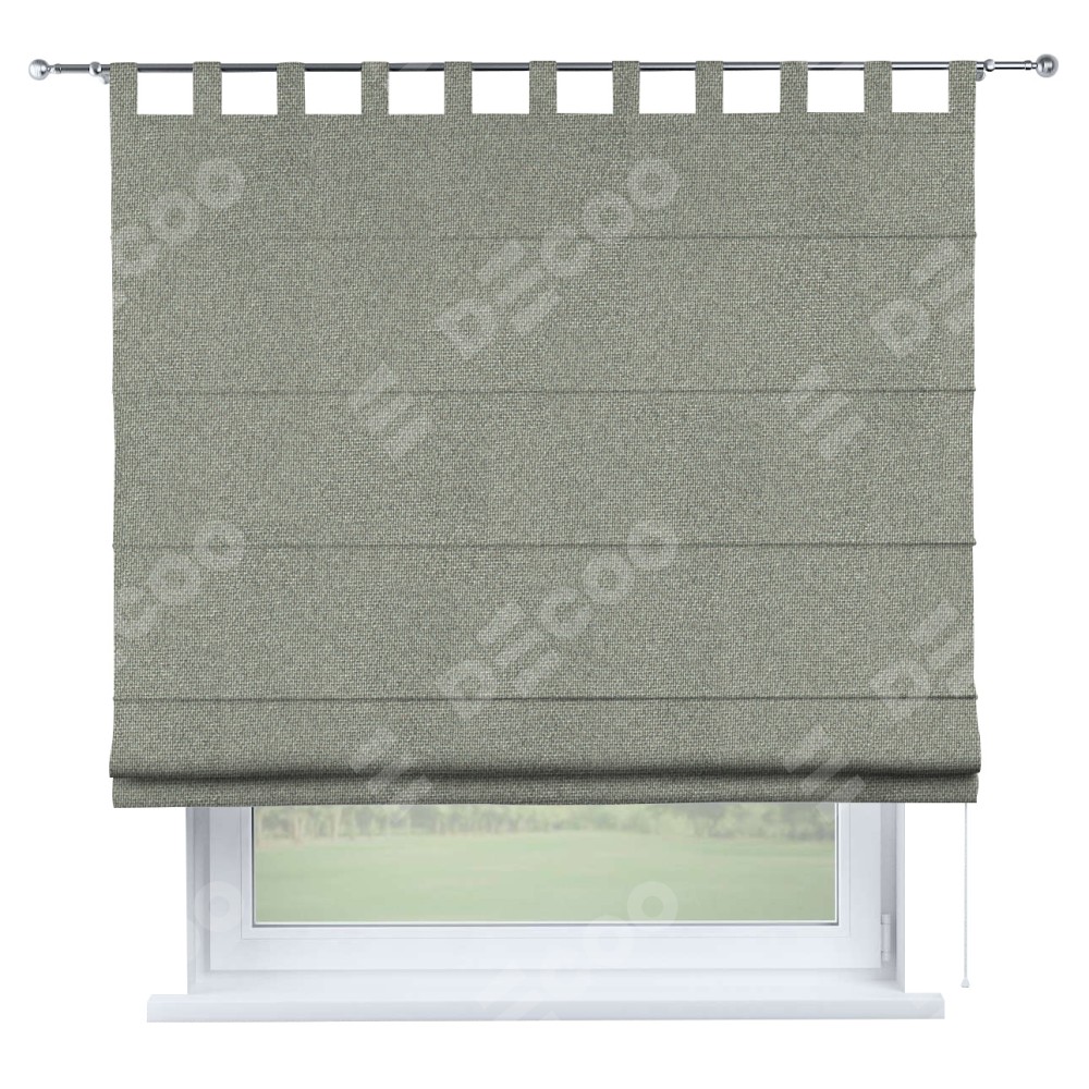 Римская штора производителя «Cortin», используется для проёма, пошита из ткани лён димаут серый, артикул ткани 91009. Данная модель пошита на петлях, комплектуется на выбор круглым карнизом и подходит для монтажа на стену. Римская штора на петлях имеет простую систему регулировки высоты, отличительным преимуществом данной модели является простой способ монтажа. Достаточно повесить ее на трубу и штора готова!