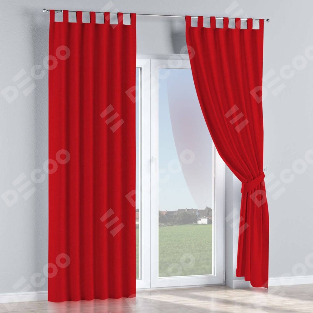 Комплект прямых штор, от производителя «Cortin», пошиты из ткани канвас красный, артикул ткани v-113. Данная модель пошита на петлях, комплектуется на выбор круглым карнизом и подходит для монтажа на стену или потолок. Прямые шторы на петлях шьются по стандарту с коэффициентом 1/2 (на 100 см. ширины проёма 200 см. ширины ткани), отличительным преимуществом данной модели является простой способ монтажа. Достаточно повесить ее на трубу и штора готова!