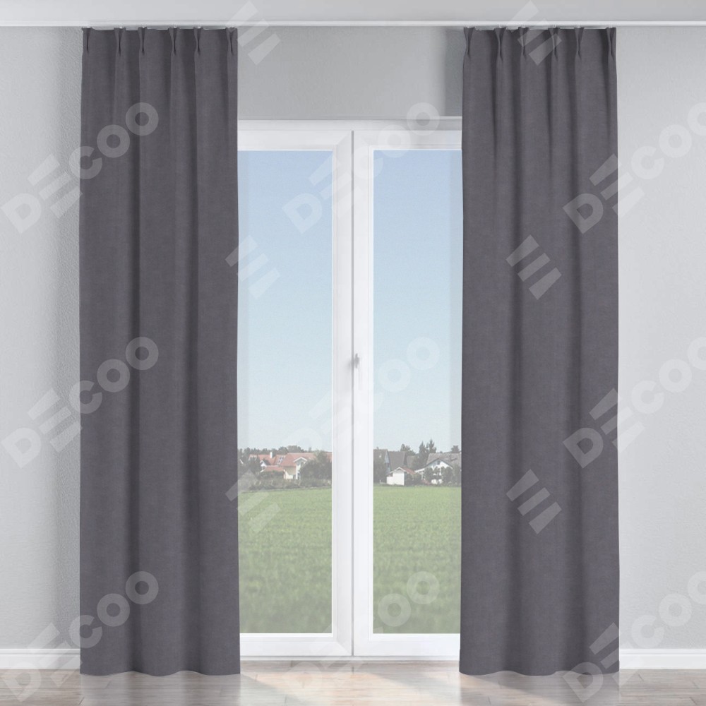 Комплект прямых штор, от производителя «Cortin», пошиты из ткани канвас лавандовый, артикул ткани v-223. С изнаночной стороны в верхней части штор пристрачивается шторная лента с декоративными складками «Кустик». Для создания элегантных складок прямые шторы шьются по стандарту с коэффициентом 1:2 (на 100 см. ширины проёма 200 см. ширины ткани).