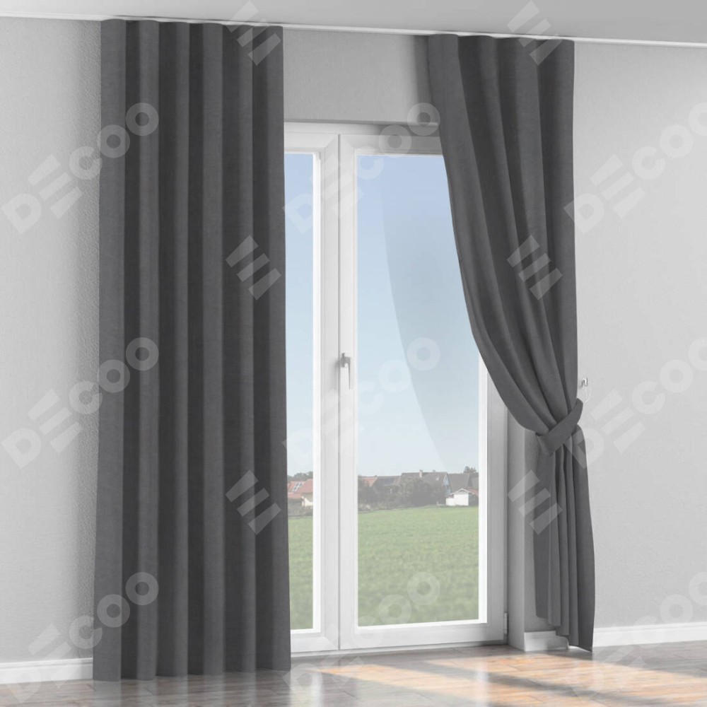 Комплект прямых штор, от производителя «Cortin», пошиты из ткани канвас мокрый асфальт, артикул ткани v-1083. С изнаночной стороны в верхней части штор пристрачивается шторная лента с декоративными складками «Волна». Для создания элегантных складок прямые шторы шьются по стандарту с коэффициентом 1:2 (на 100 см. ширины проёма 200 см. ширины ткани).