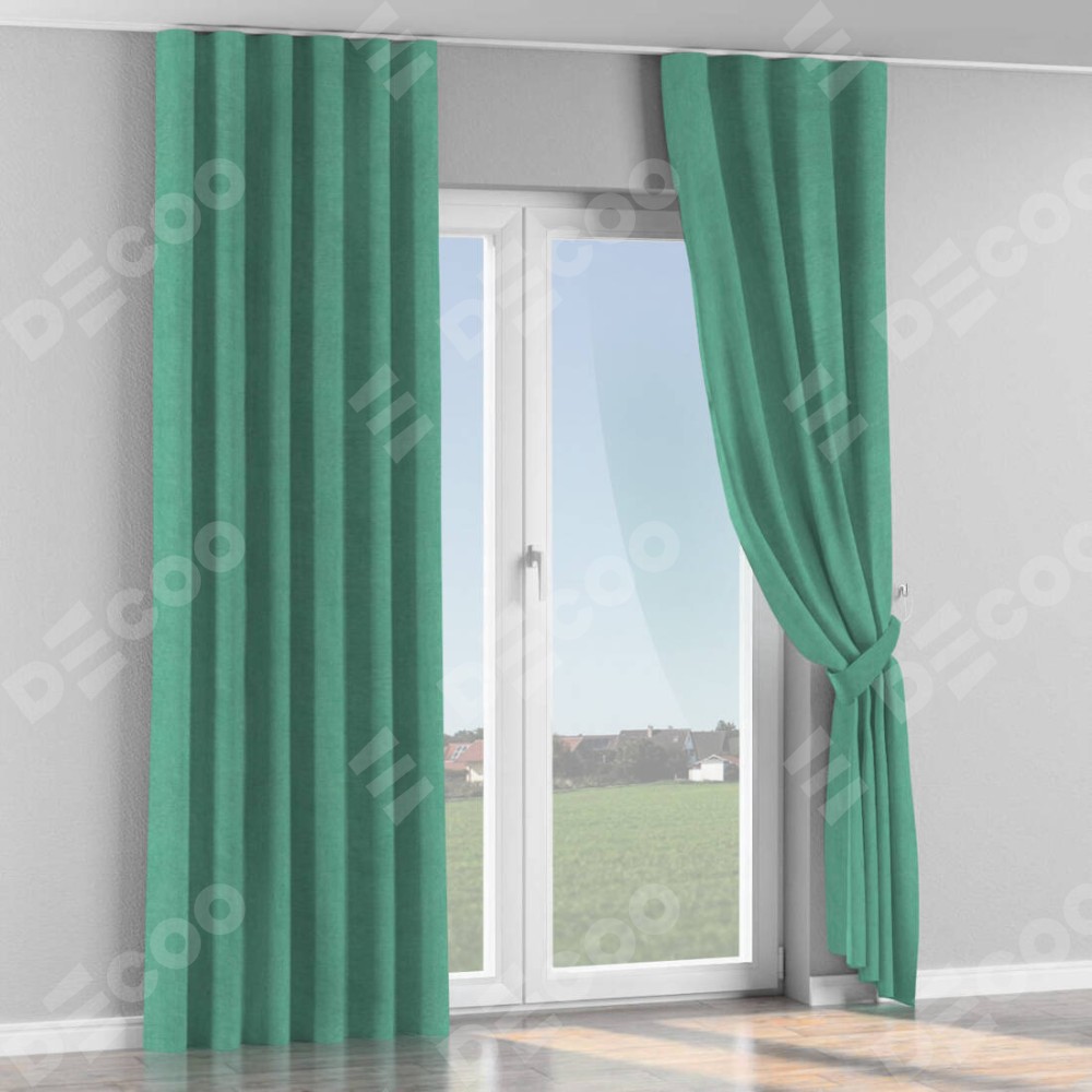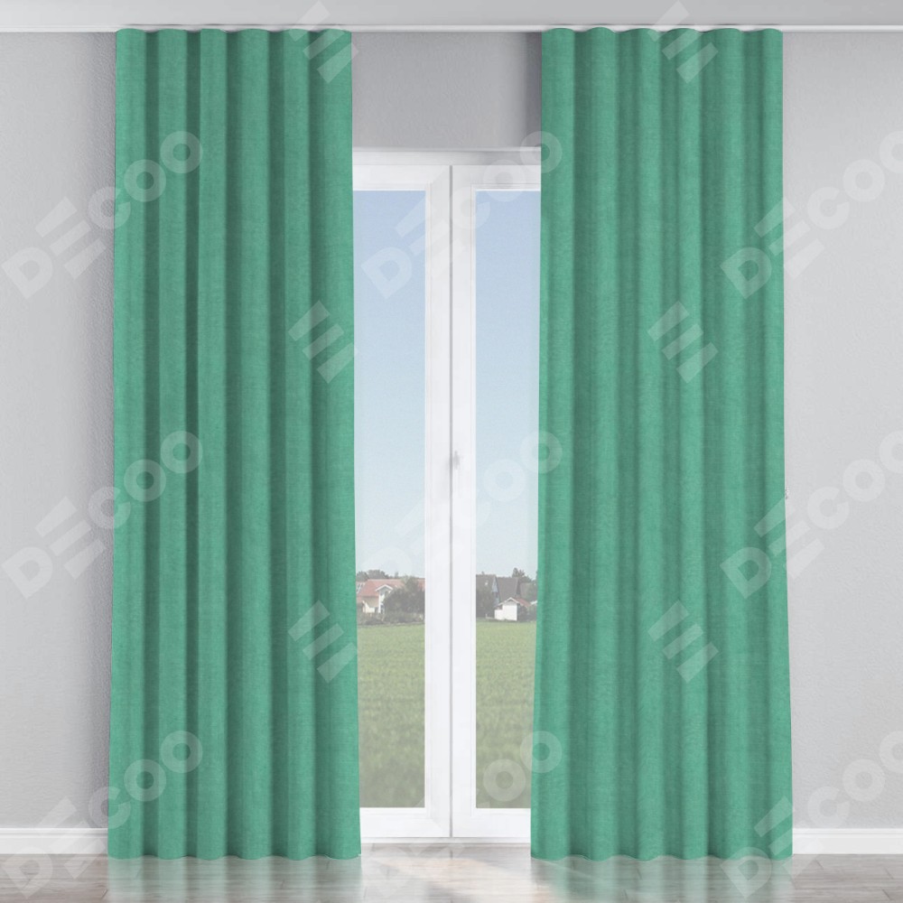 Комплект прямых штор, от производителя «Cortin», пошиты из ткани канвас мятный, артикул ткани v-248. С изнаночной стороны в верхней части штор пристрачивается шторная лента с декоративными складками «Волна». Для создания элегантных складок прямые шторы шьются по стандарту с коэффициентом 1:2 (на 100 см. ширины проёма 200 см. ширины ткани).