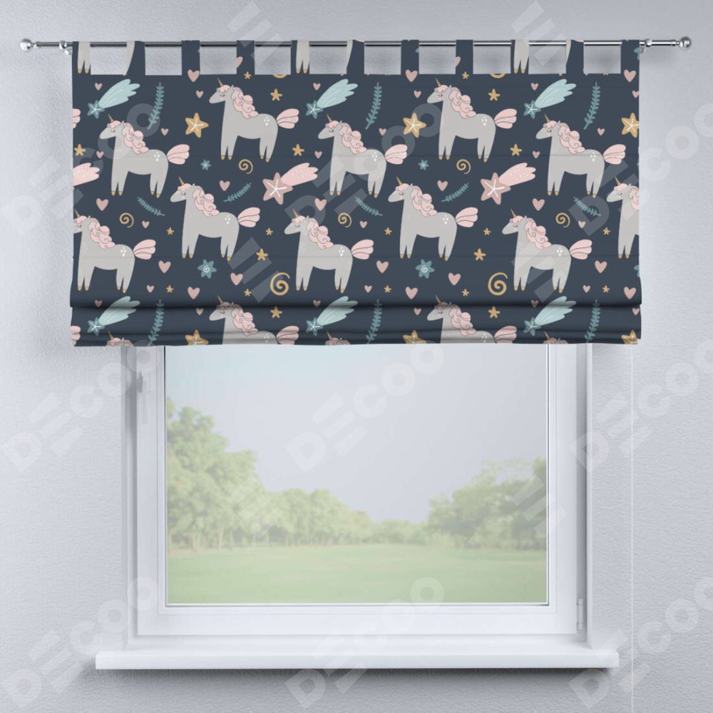 Римская штора «Кортин» на петлях «Милые единороги»