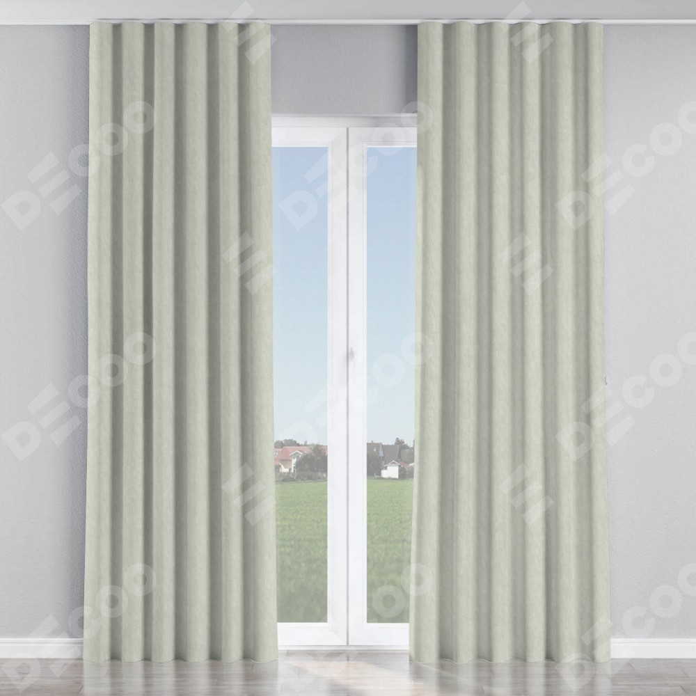 Комплект прямых штор, от производителя «Cortin», пошиты из ткани канвас светло-серый, артикул ткани v-371. С изнаночной стороны в верхней части штор пристрачивается шторная лента с декоративными складками «Волна». Для создания элегантных складок прямые шторы шьются по стандарту с коэффициентом 1:2 (на 100 см. ширины проёма 200 см. ширины ткани).