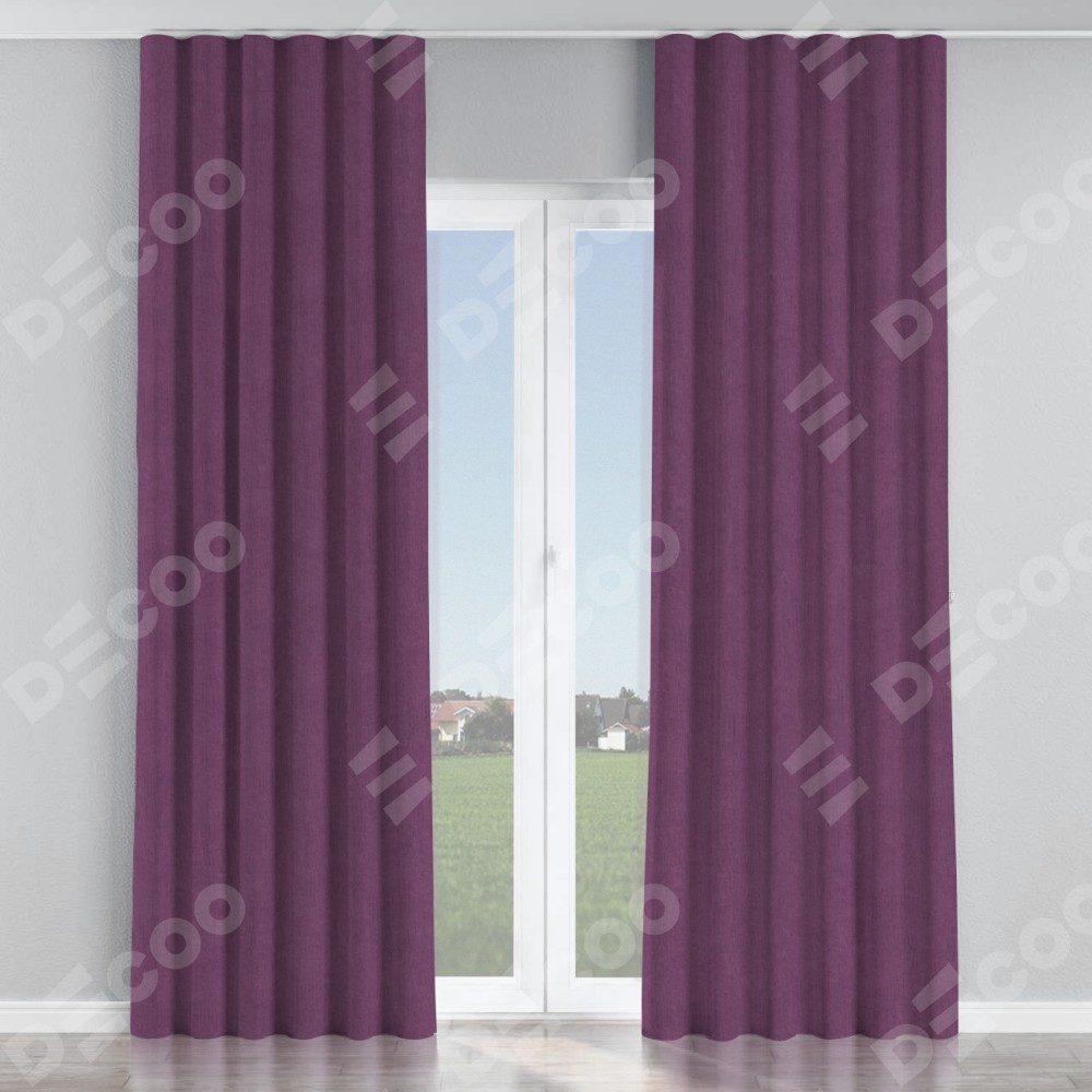 Комплект прямых штор, от производителя «Cortin», пошиты из ткани канвас сиреневый, артикул ткани v-98. С изнаночной стороны в верхней части штор пристрачивается шторная лента с декоративными складками «Волна». Для создания элегантных складок прямые шторы шьются по стандарту с коэффициентом 1:2 (на 100 см. ширины проёма 200 см. ширины ткани).