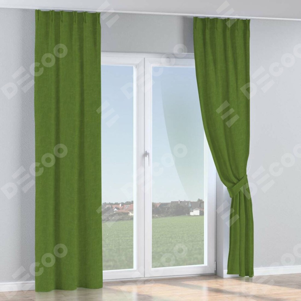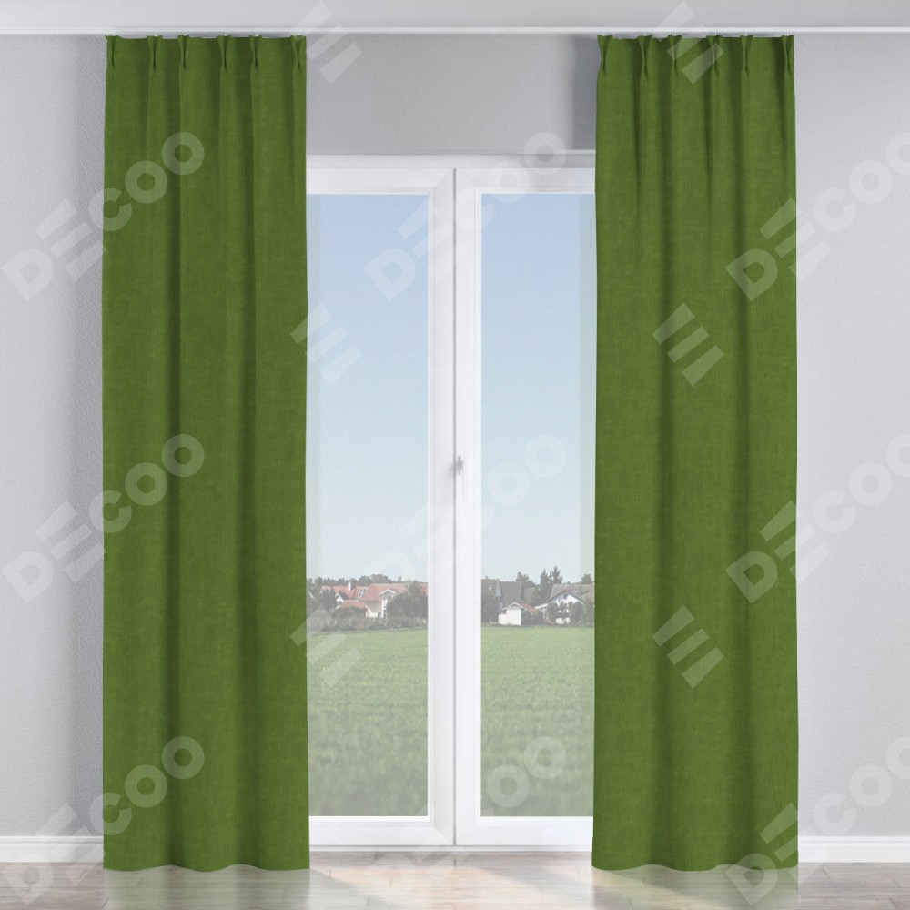 Комплект прямых штор, от производителя «Cortin», пошиты из ткани канвас трава, артикул ткани v-473. С изнаночной стороны в верхней части штор пристрачивается шторная лента с декоративными складками «Кустик». Для создания элегантных складок прямые шторы шьются по стандарту с коэффициентом 1:2 (на 100 см. ширины проёма 200 см. ширины ткани).