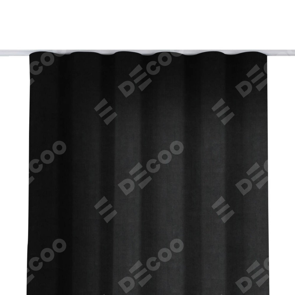 Комплект прямых штор, от производителя «Cortin», пошиты из ткани канвас черный, артикул ткани v-194. С изнаночной стороны в верхней части штор пристрачивается шторная лента с декоративными складками «Волна». Для создания элегантных складок прямые шторы шьются по стандарту с коэффициентом 1:2 (на 100 см. ширины проёма 200 см. ширины ткани).