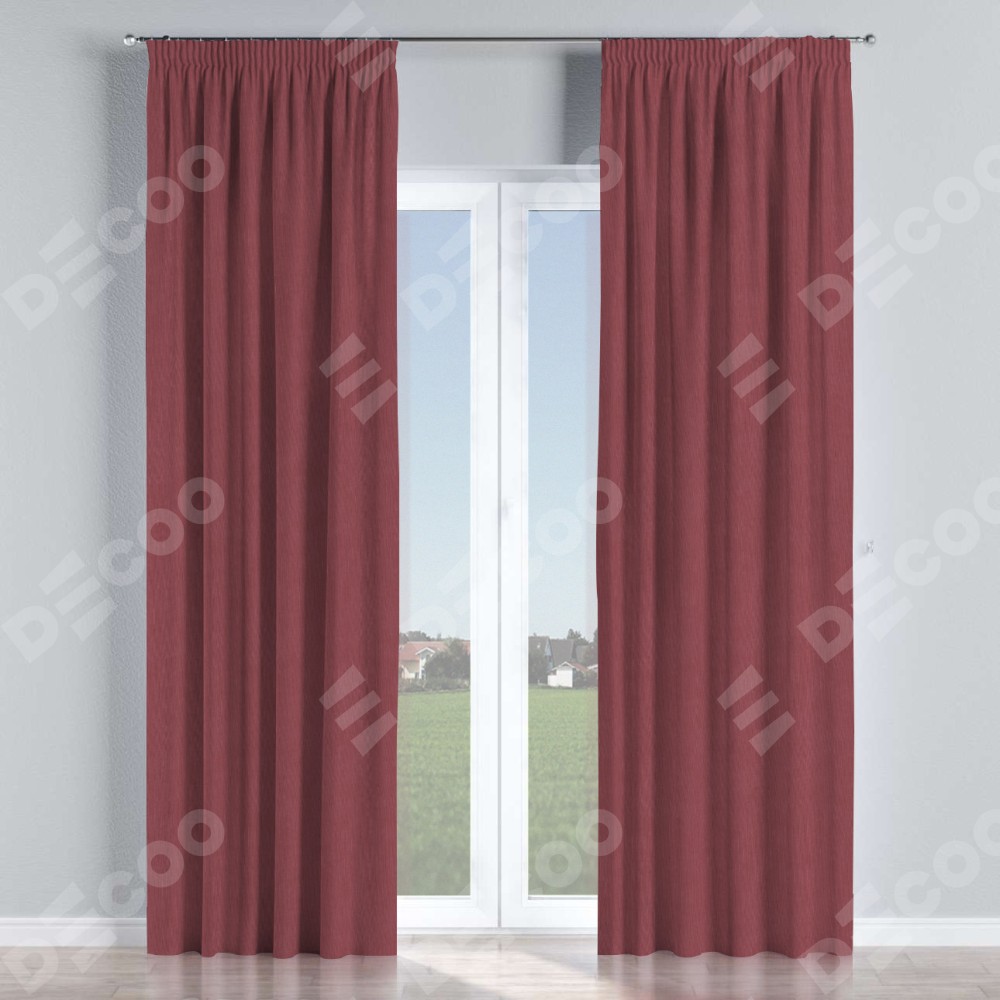 Комплект прямых штор, от производителя «Cortin», пошиты из ткани канвас ягодный, артикул ткани v-28. С изнаночной стороны в верхней части штор пристрачивается шторная лента с декоративными складками «Карандаш». Для создания элегантных складок прямые шторы шьются по стандарту с коэффициентом 1:2 (на 100 см. ширины проёма 200 см. ширины ткани).
