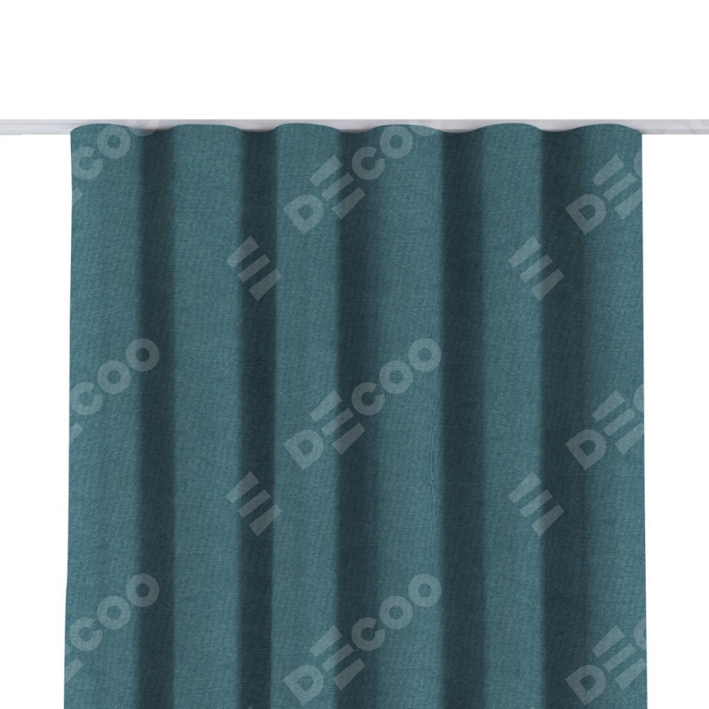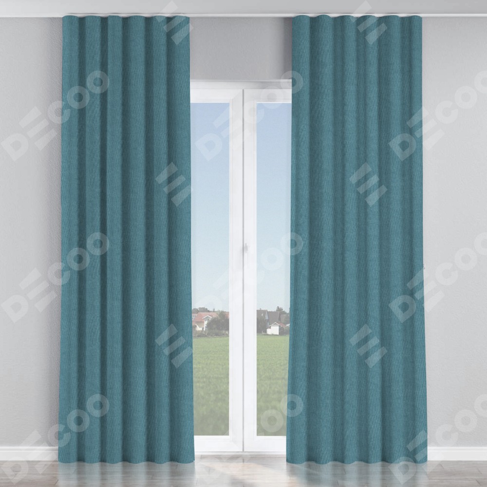 Комплект прямых штор, от производителя «Cortin», пошиты из ткани лён димаут светло-синий, артикул ткани 91007. С изнаночной стороны в верхней части штор пристрачивается шторная лента с декоративными складками «Волна». Для создания элегантных складок прямые шторы шьются по стандарту с коэффициентом 1:2 (на 100 см. ширины проёма 200 см. ширины ткани).