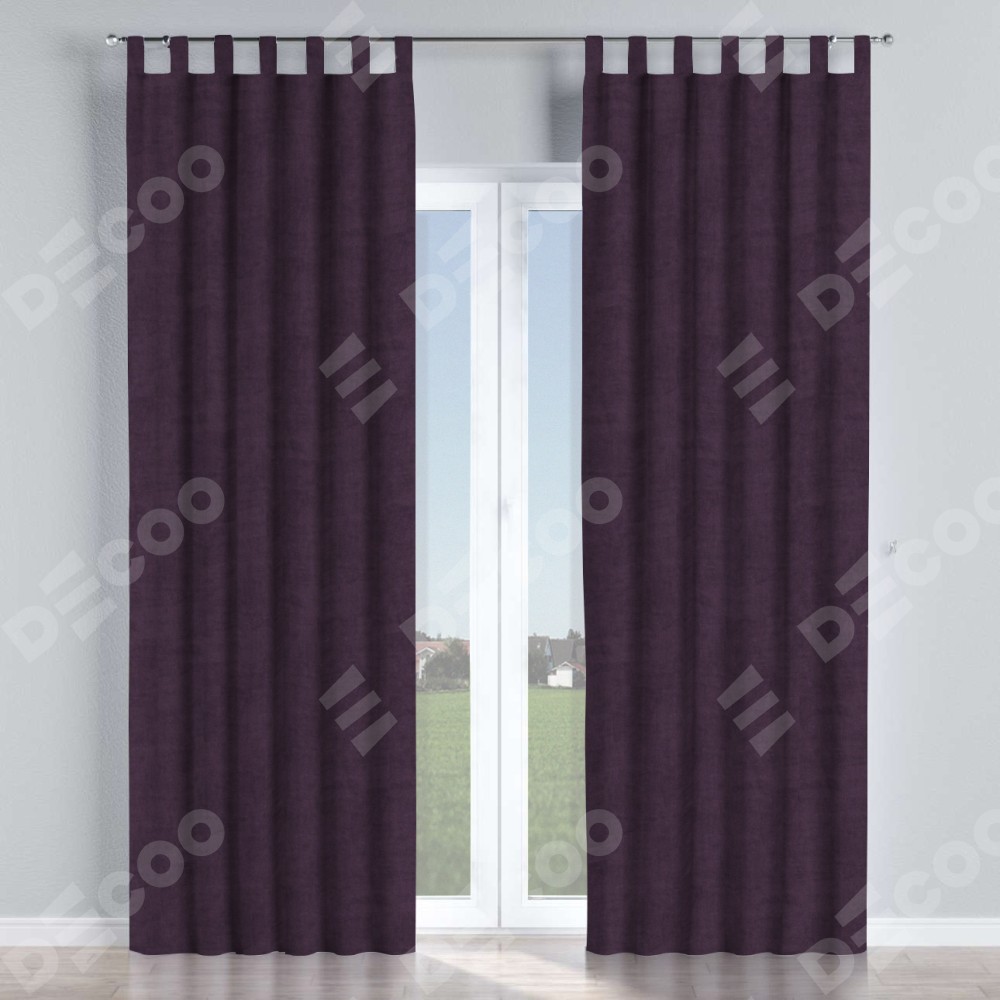 Комплект прямых штор, от производителя «Cortin», пошиты из ткани вельвет тёмно-фиолетовый, артикул ткани 72403. Данная модель пошита на петлях, комплектуется на выбор круглым карнизом и подходит для монтажа на стену или потолок. Прямые шторы на петлях шьются по стандарту с коэффициентом 1/2 (на 100 см. ширины проёма 200 см. ширины ткани), отличительным преимуществом данной модели является простой способ монтажа. Достаточно повесить ее на трубу и штора готова!