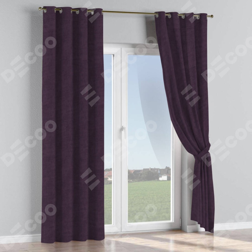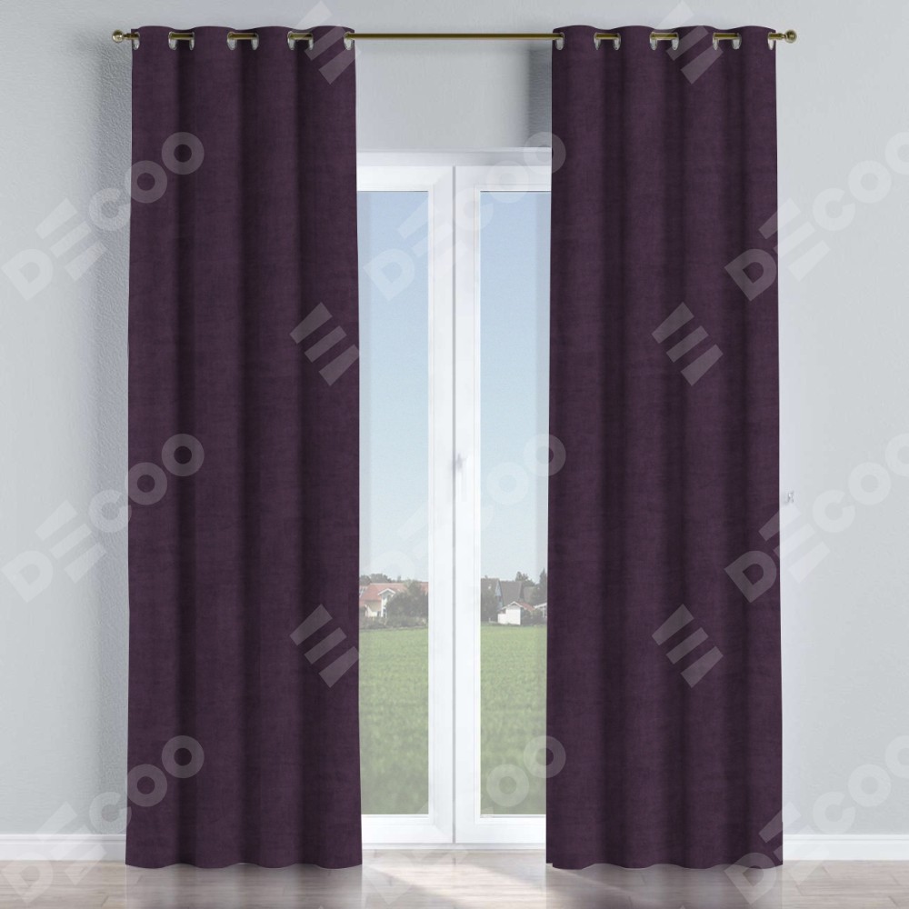 Комплект прямых штор, от производителя «Cortin», пошиты из ткани вельвет тёмно-фиолетовый, артикул ткани 72403. Данная модель пошита на люверсах, комплектуется на выбор круглым карнизом и подходит для монтажа на стену или потолок. Прямые шторы на люверсах шьются по стандарту с коэффициентом 1/2 (на 100 см. ширины проёма 200 см. ширины ткани), отличительным преимуществом данной модели является простой способ монтажа. Достаточно повесить ее на трубу и штора готова!