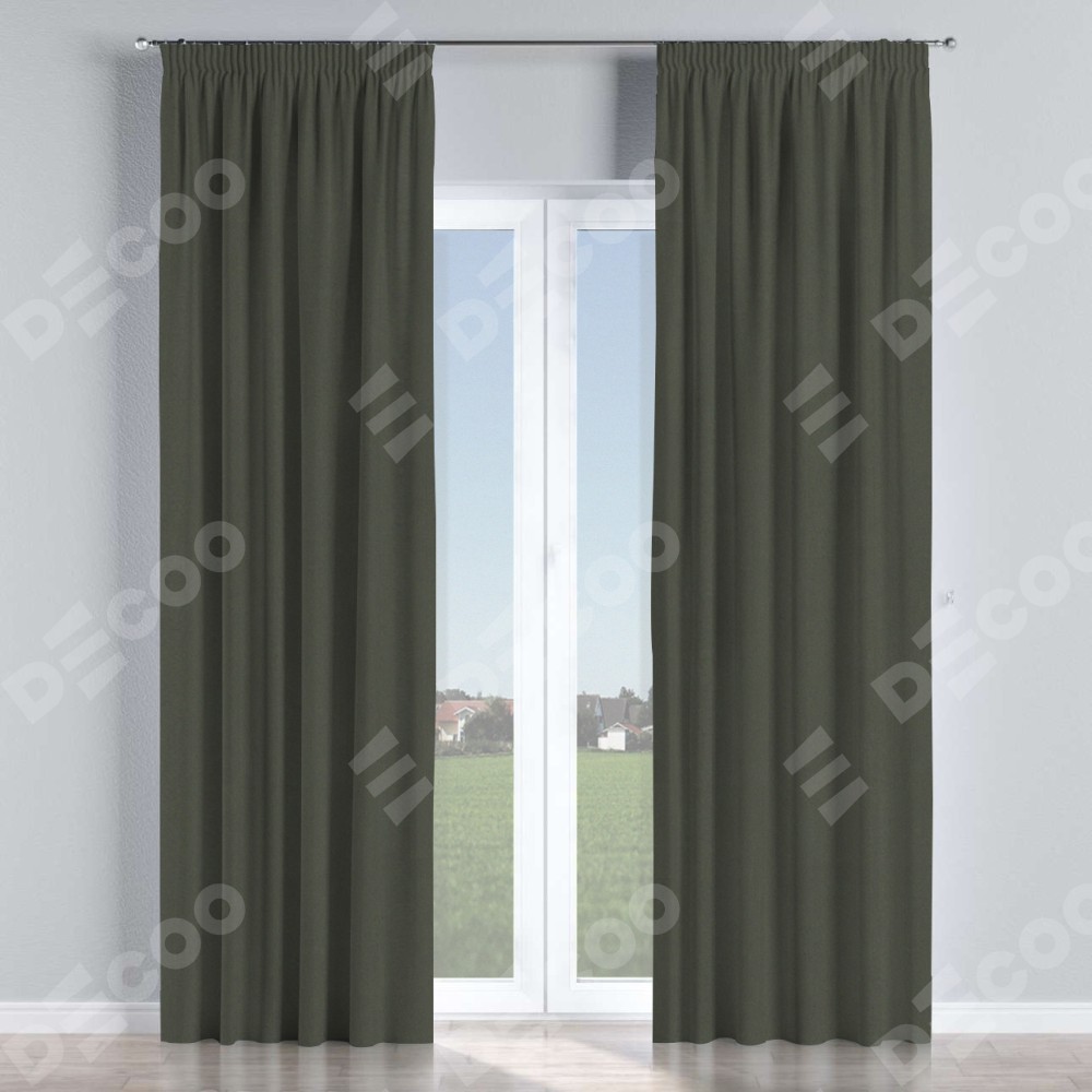 Комплект прямых штор, от производителя «Cortin», пошиты из ткани блэкаут однотонный дымчато-серый, артикул ткани 91571−1. С изнаночной стороны в верхней части штор пристрачивается шторная лента с декоративными складками «Карандаш». Для создания элегантных складок прямые шторы шьются по стандарту с коэффициентом 1:2 (на 100 см. ширины проёма 200 см. ширины ткани).