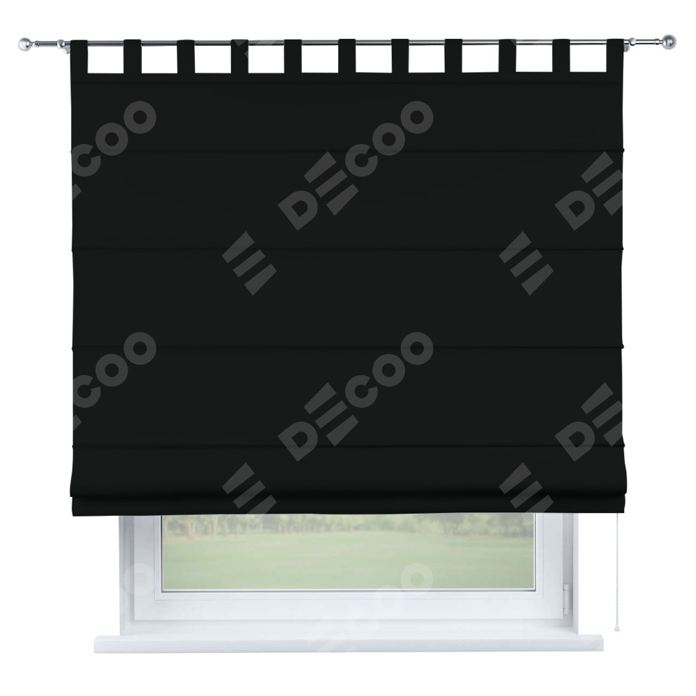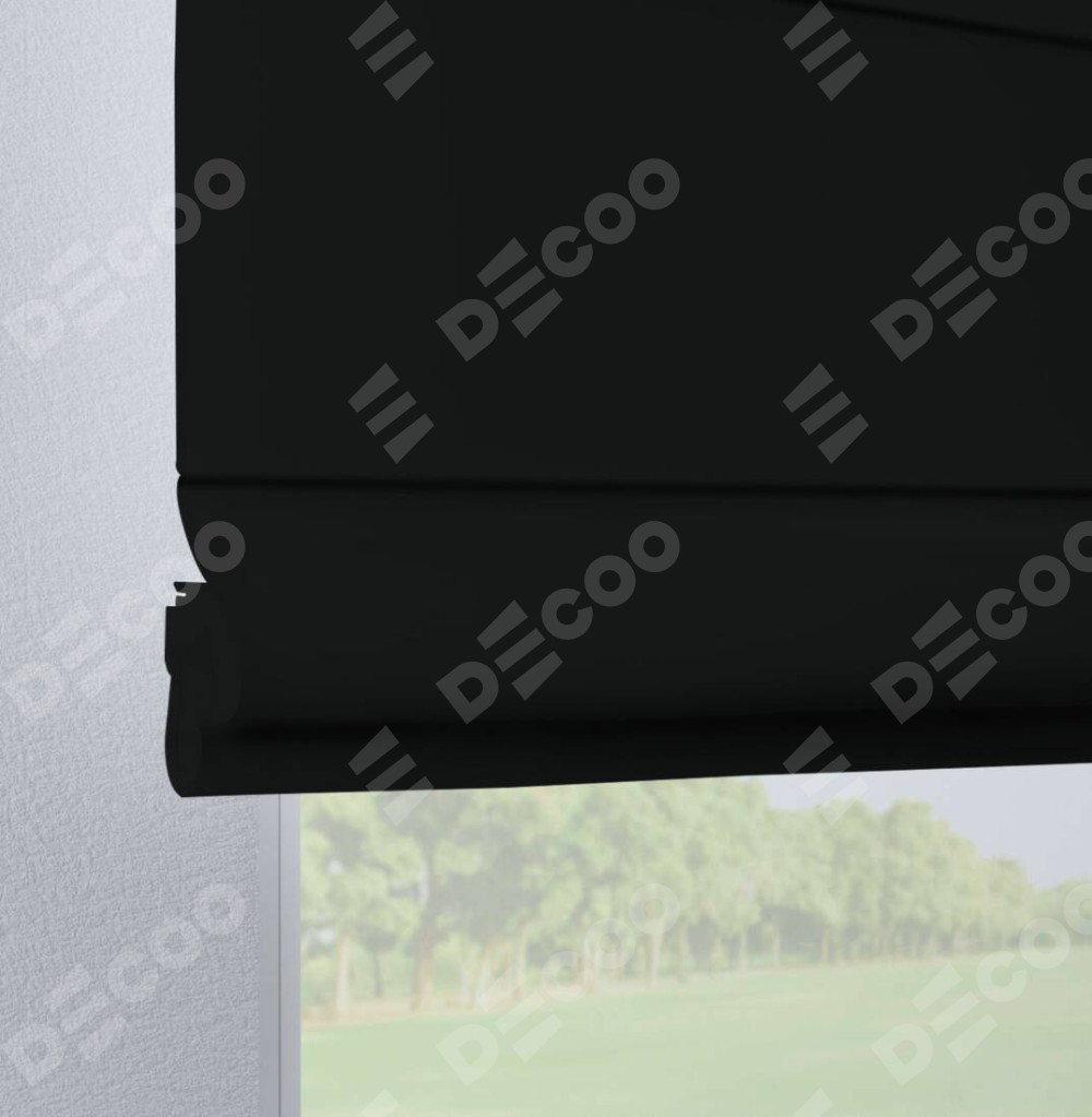 Римская штора производителя «Cortin», используется для проёма, пошита из ткани блэкаут однотонный черный, артикул ткани 91571−2. Данная модель пошита на петлях, комплектуется на выбор круглым карнизом и подходит для монтажа на стену. Римская штора на петлях имеет простую систему регулировки высоты, отличительным преимуществом данной модели является простой способ монтажа. Достаточно повесить ее на трубу и штора готова!