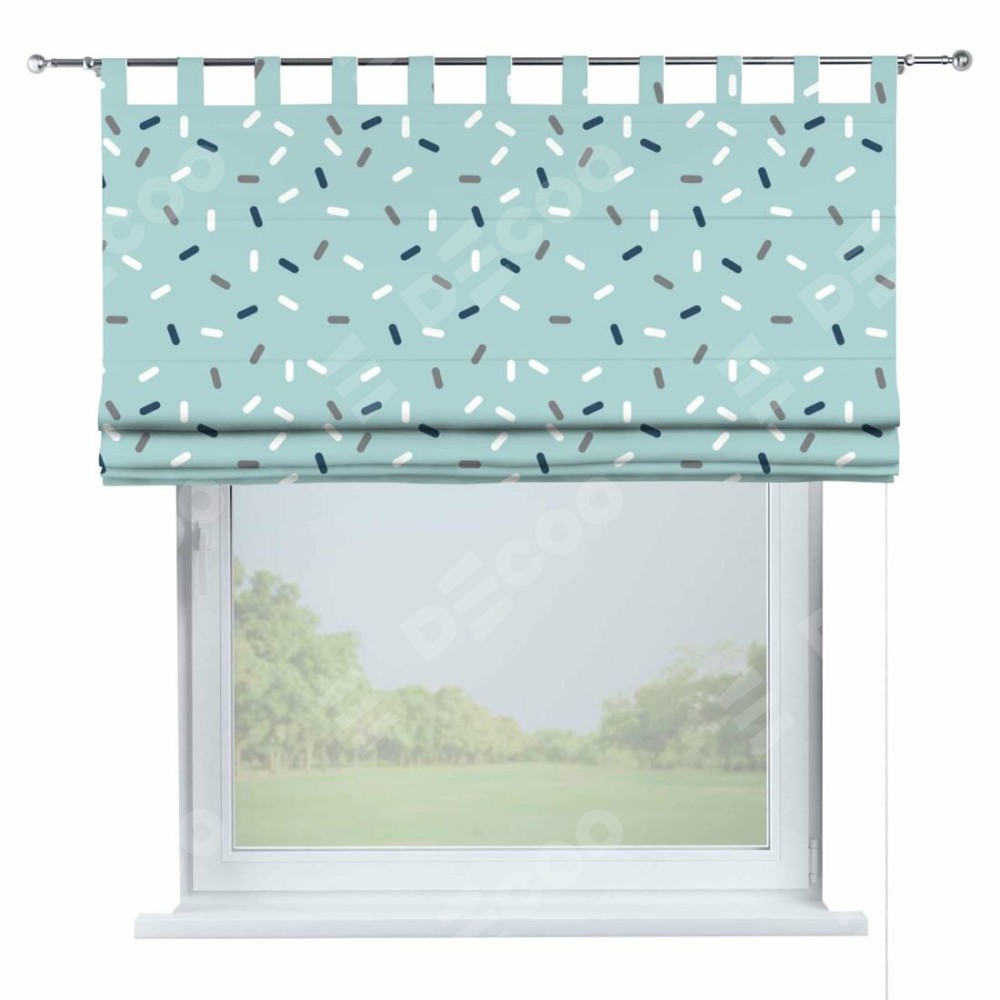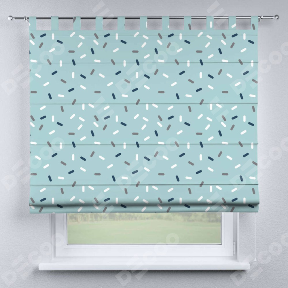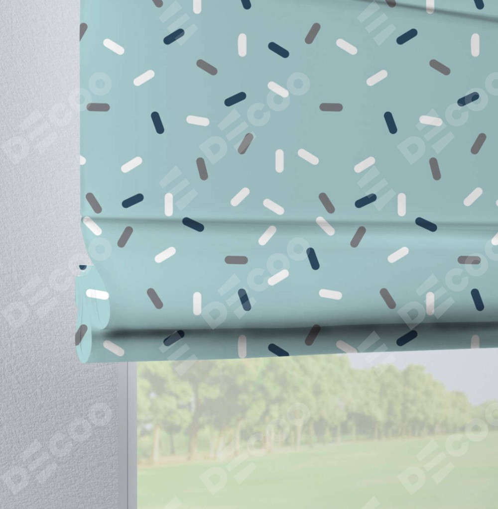 Римская штора производителя «Cortin», используется для проёма, пошита из ткани блэкаут с нанесением сублимационной печати «Короткие линии». Данная модель пошита на петлях, комплектуется на выбор круглым карнизом и подходит для монтажа на стену. Римская штора на петлях имеет простую систему регулировки высоты, отличительным преимуществом данной модели является простой способ монтажа. Достаточно повесить ее на трубу и штора готова!