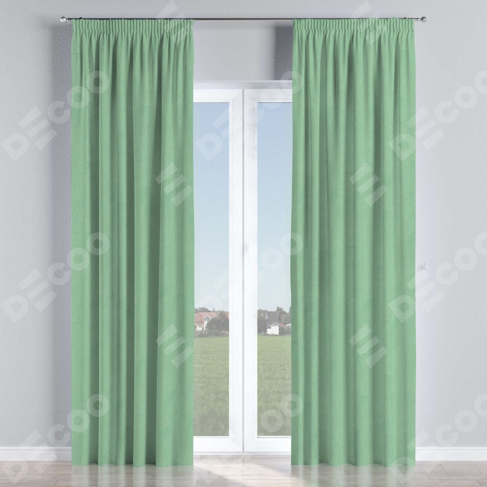 Комплект прямых штор, от производителя «Cortin», пошиты из ткани блэкаут однотонный ментоловый, артикул ткани 91572−1. С изнаночной стороны в верхней части штор пристрачивается шторная лента с декоративными складками «Карандаш». Для создания элегантных складок прямые шторы шьются по стандарту с коэффициентом 1:2 (на 100 см. ширины проёма 200 см. ширины ткани).