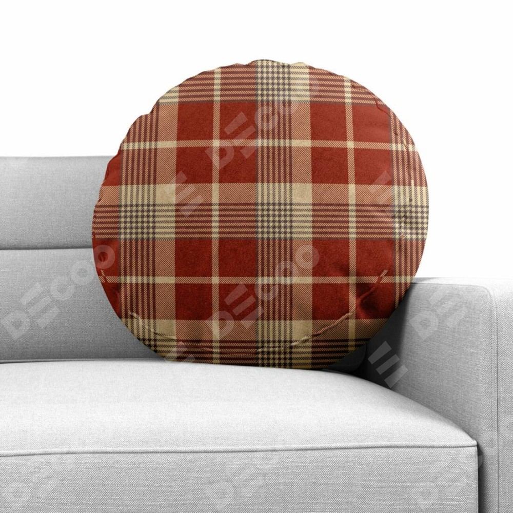 Подушка круглая Cortin «Бежево-бордовая клетка»