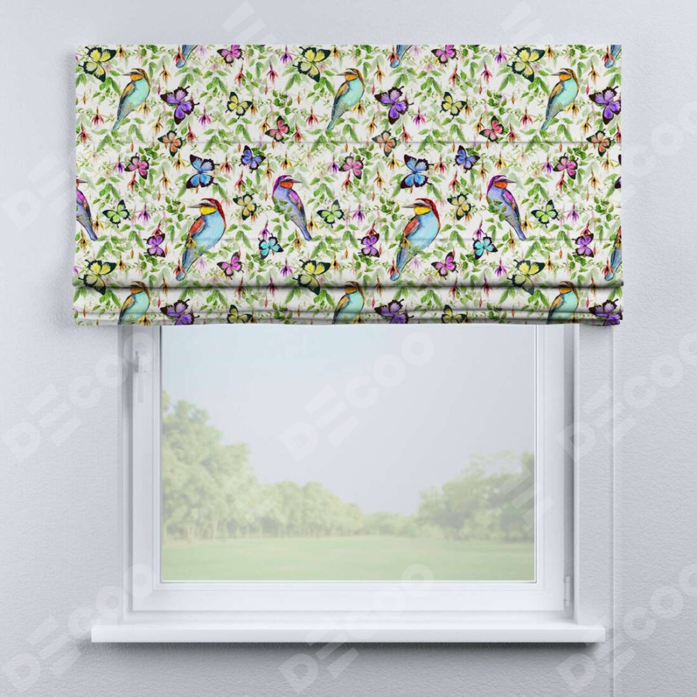 Римская штора «Кортин» для проема «Тропические птицы»