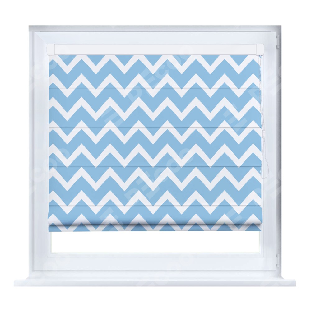 Римская штора кассетного типа, производителя «Cortin», устанавливается только на пластиковые окна и прилегает к стеклопакету, пошита из ткани блэкаут с нанесением сублимационной печати «Зигзаг средний».