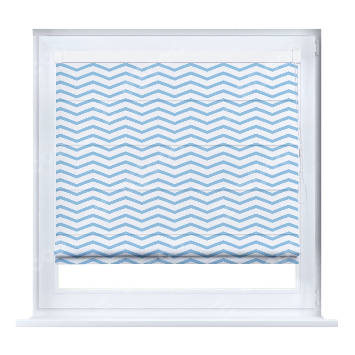 Римская штора кассетного типа, производителя «Cortin», устанавливается только на пластиковые окна и прилегает к стеклопакету, пошита из ткани блэкаут с нанесением сублимационной печати «Зигзаг мелкий».