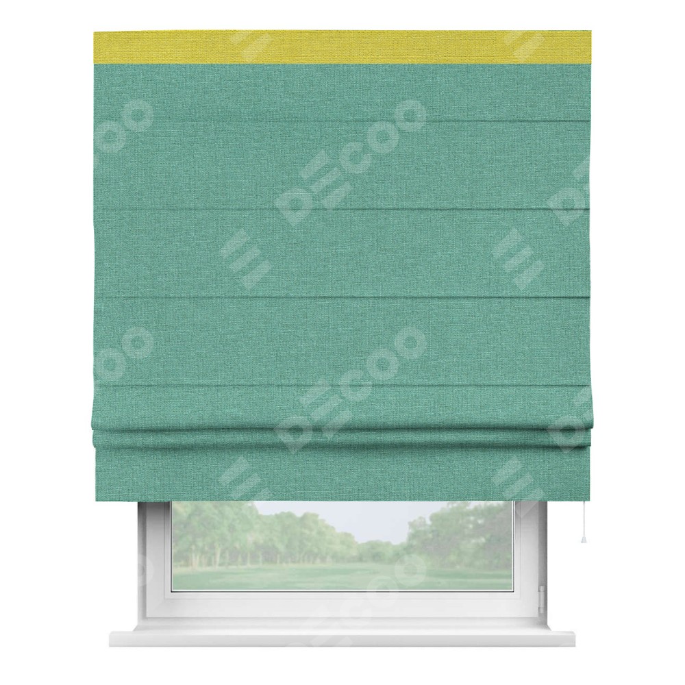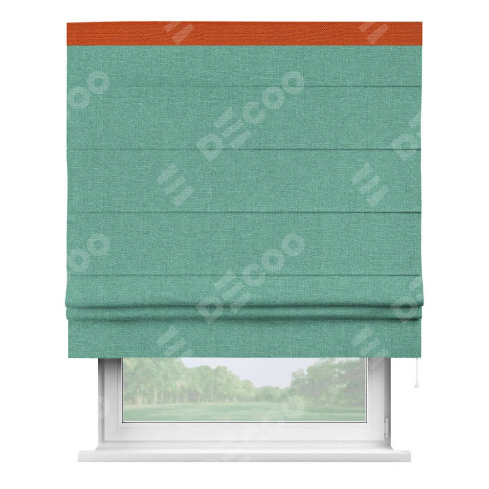 Римская штора «Кортин» с кантом Кинг, для проема, лён светло-бирюзовый