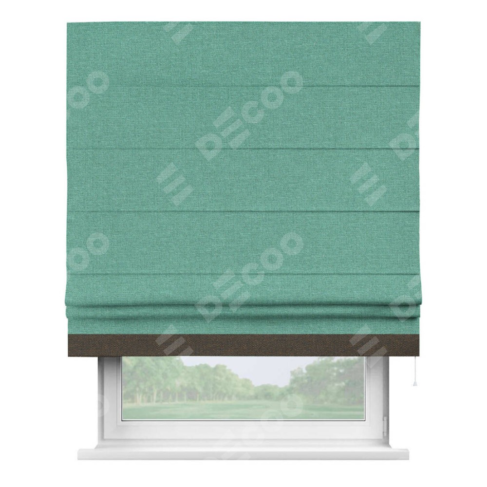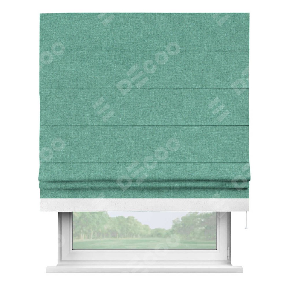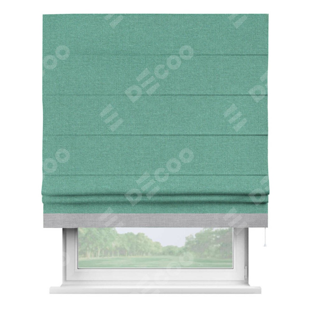 Римская штора «Кортин» с кантом Джестер, для проема, лён светло-бирюзовый