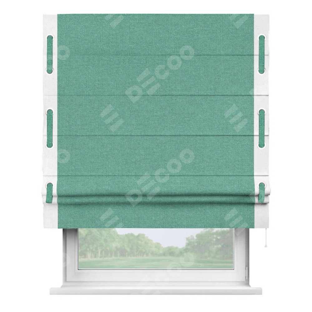 Римская штора «Кортин» с кантом Стрим Дуо (люверсы с пояском), для проема, лён светло-бирюзовый