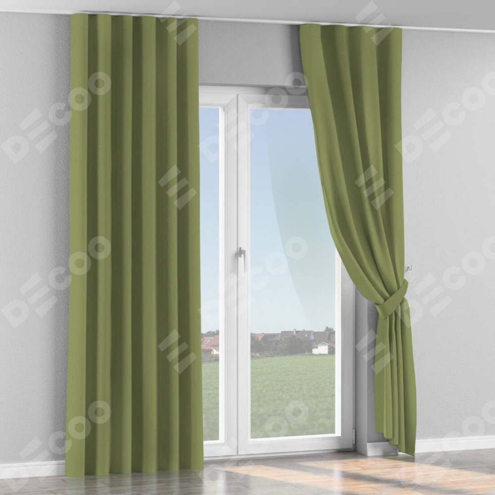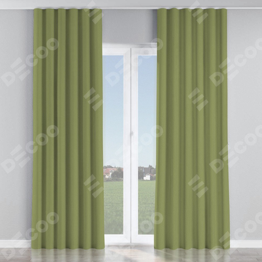 Комплект прямых штор, от производителя «Cortin», пошиты из ткани бархат золотая оливка, артикул ткани 90725. С изнаночной стороны в верхней части штор пристрачивается шторная лента с декоративными складками «Волна». Для создания элегантных складок прямые шторы шьются по стандарту с коэффициентом 1:2 (на 100 см. ширины проёма 200 см. ширины ткани).