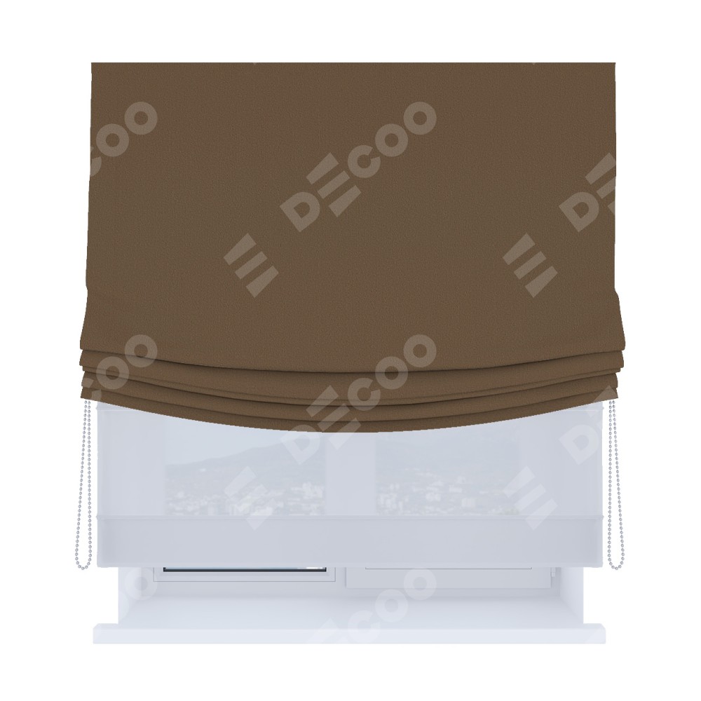 Римская штора «Кортин», блэкаут однотонный коричневый, день-ночь с мягкими складками